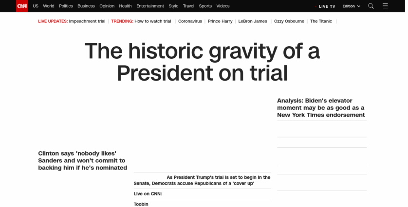 ” , title: “CNN – Breaking News, Latest News and Videos” , siblings: {“articleList”:[{“uri”:”/2020/01/21/politics/hillary-clinton-bernie-sanders-documentary/index.html”,”headline”:”Clinton says ‘nobody likes’ Sanders and won’t commit to backing him if he’s nominated”,”thumbnail”:”//cdn.cnn.com/cnnnext/dam/assets/200121090954-hillary-clinton-bernie-sanders-file-small-11.jpg”,”duration”:””,”description”:”⢠\u003ca href=\”https://www.cnn.com/2020/01/21/politics/hillary-clinton-bernie-sanders-2020/index.html\” target=\”_blank\”>Analysis: Why Clinton hating on Bernie Sanders is great news for him\u003c/a>\u003cbr />⢠\u003ca href=\”https://www.cnn.com/2019/12/05/politics/hillary-clinton-bernie-sanders-howard-stern/index.html\” target=\”_blank\”>Analysis: Clinton destroyed Sanders in her Howard Stern interview\u003c/a>”,”layout”:””