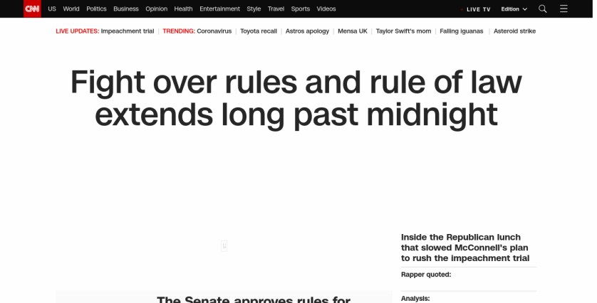 CNN: “:”\u003cstrong>Day 1: \u003c/strong>Senate passes impeachment trial rules “, “BANNER=|pagerendered| ((lubuntu at wor1))
