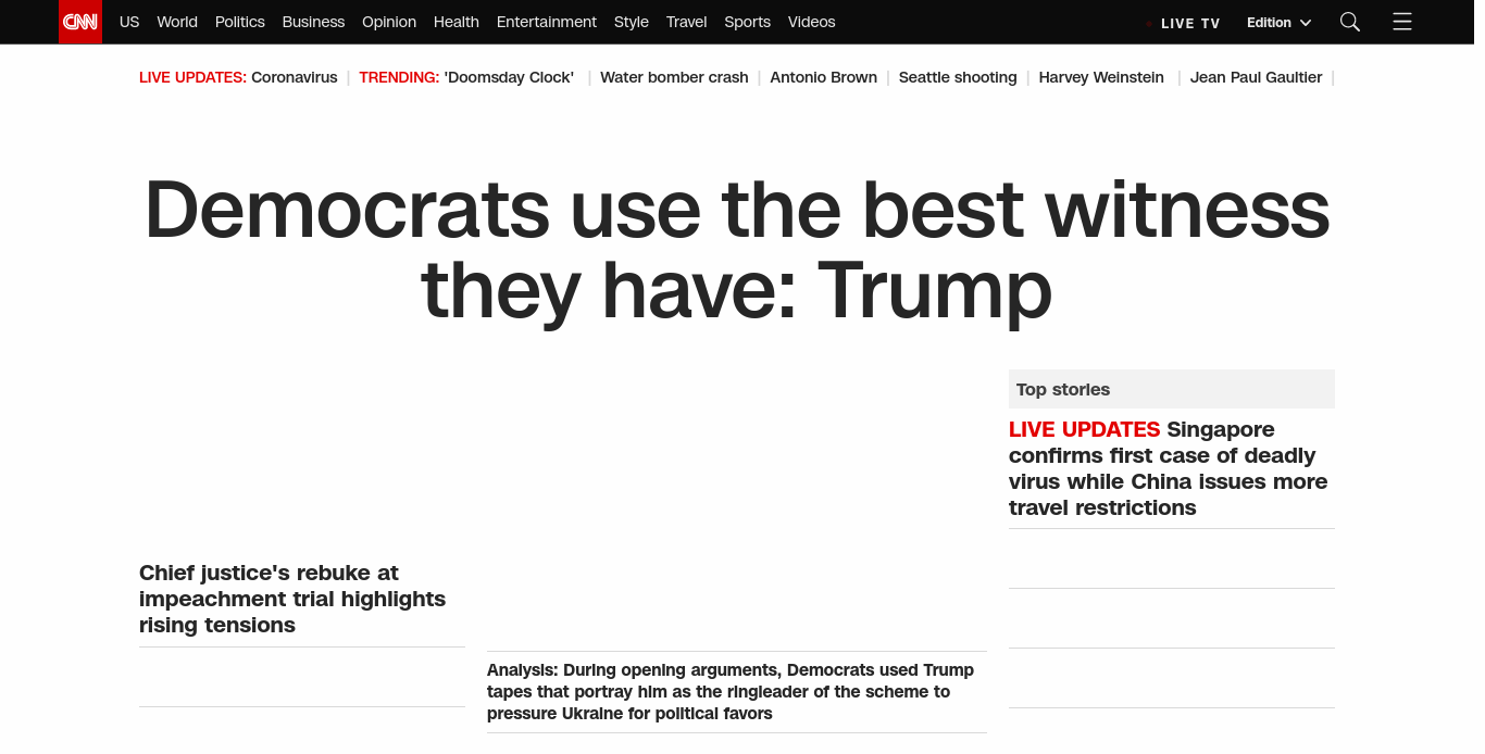 CNN: subjectpartBANNER=|Democrats use the best witness they have: Trump| ((lubuntu at wor1)) Chief justice’s rebuke at impeachment trial highlights rising tensions
