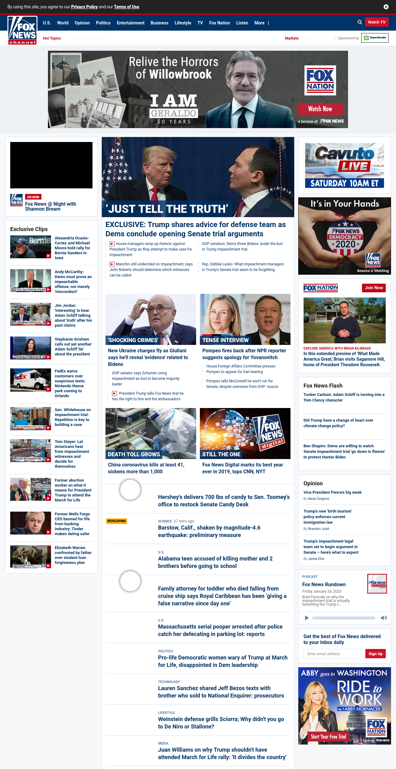 =”https://www.foxnews.com/media/president-trump-tells-ingraham-angle-all-his-impeachment-defense-team-has-to-do-is-just-be-honest-just-tell-the-truth“>EXCLUSIVE: Trump shares advice for defense team as Dems conclude opening Senate trial arguments