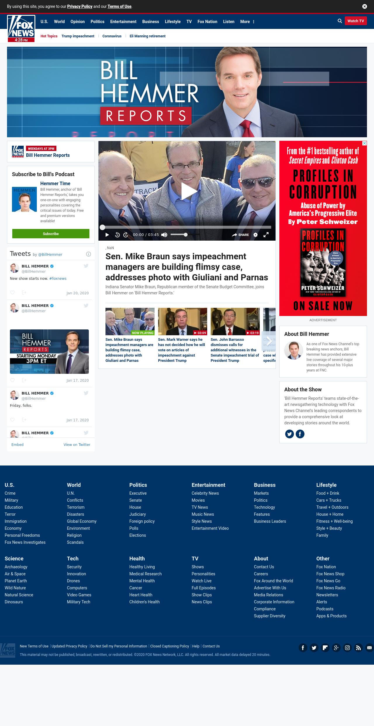 BH: Sen. Mike Braun says impeachment managers are building flimsy case, addresses photo with Giuliani and Parnas ((billhemmer________)) ((lubuntu at wor1))
