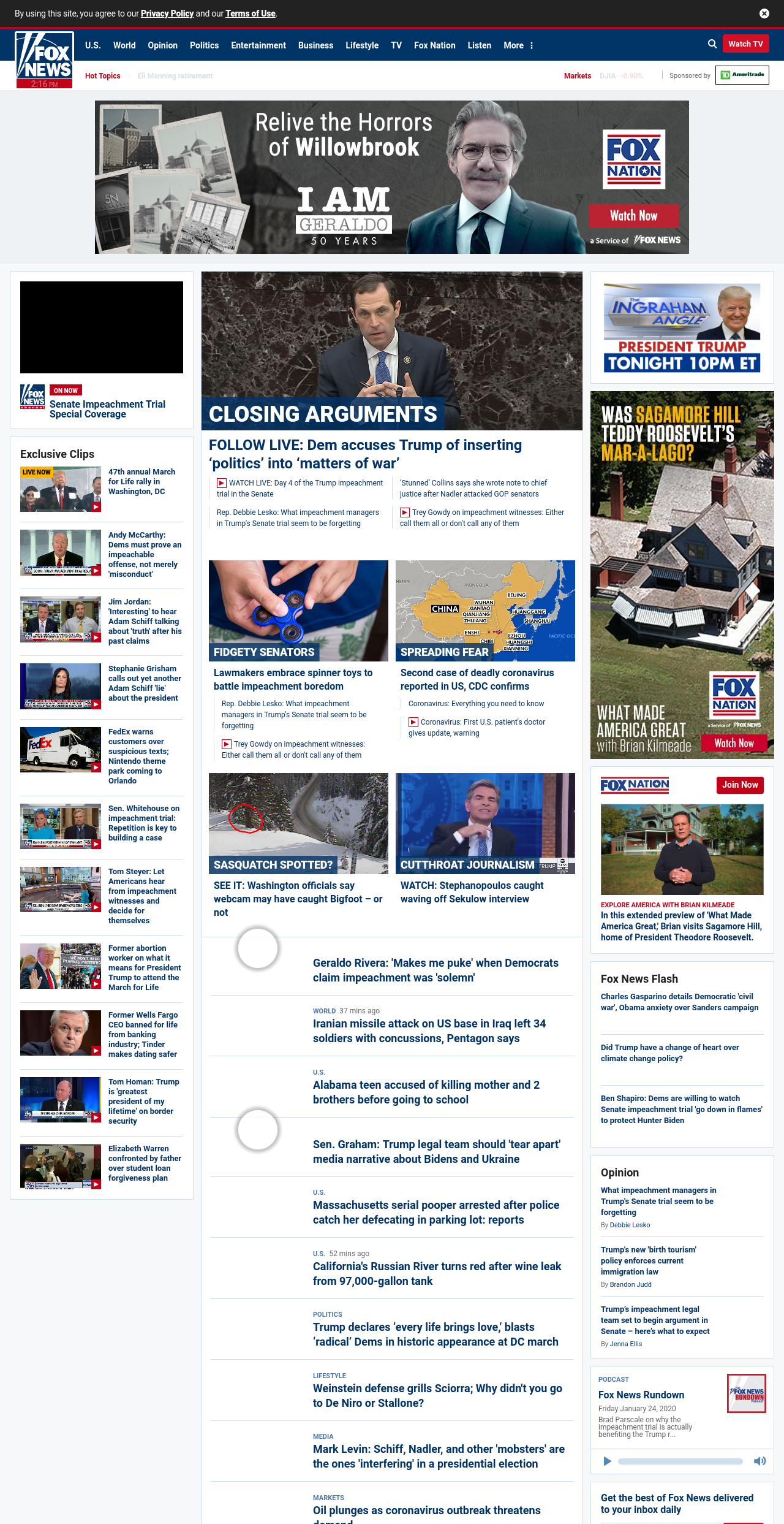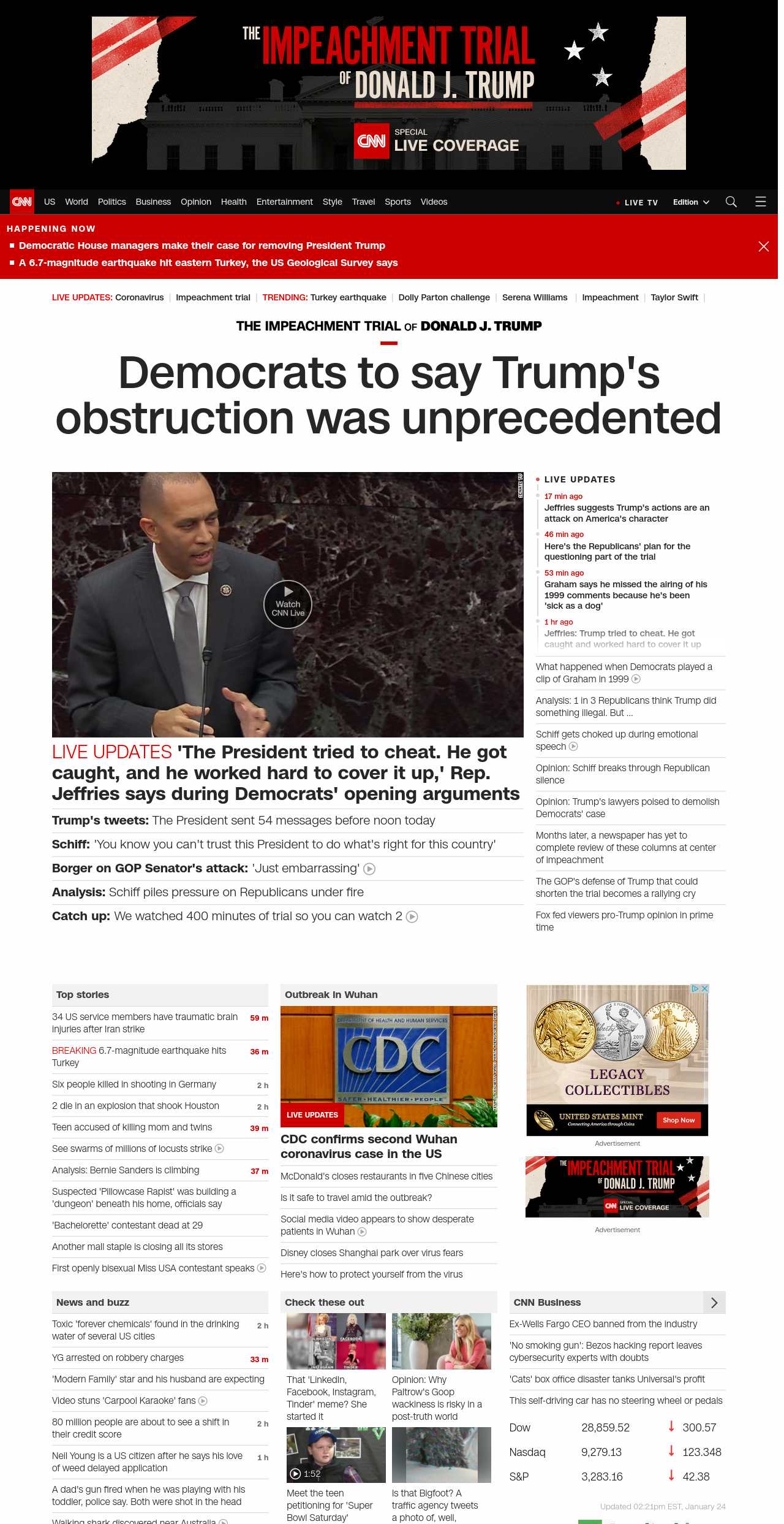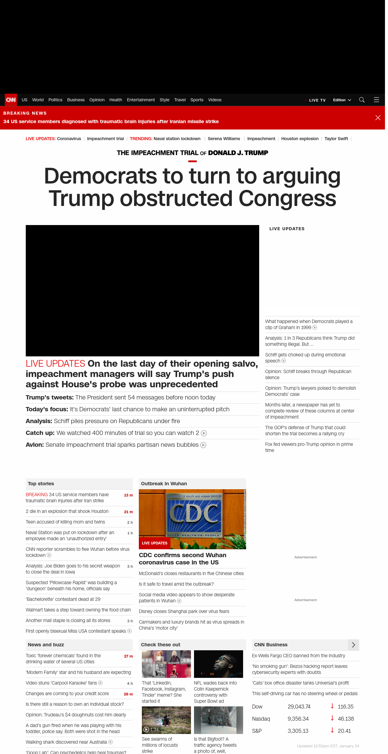 ” , title: “CNN – Breaking News, Latest News and Videos” , siblings: {“articleList”:[{“uri”:”/2020/01/24/politics/senate-impeachment-trial-day-4/index.html”,”headline”:”u003cstrong>Today’s focus: u003c/strong>It’s Democrats’ last chance to make an uninterrupted pitch”,”thumbnail”:”//cdn.cnn.com/cnnnext/dam/assets/200124121859-02-schiff-impeachment-managers-arrive-0123-small-11.jpg”,”duration”:””,”description”:”House Intelligence Chairman u003ca href=”https://www.cnn.com/2020/01/22/politics/adam-schiff-senate-impeachment-trial-2020/index.html” target=”_blank”>Adam Schiff u003c/a>and the u003ca href=”https://www.cnn.com/2020/01/15/politics/what-is-an-impeachment-manager-explainer/index.html” target=”_blank”>impeachment managers u003c/a>finish their opening arguments on Friday in what’s their final chance to make an uninterrupted pitch to senators on the fence that they should hear from more witnesses in the impeachment trial of President Donald Trump.”,”layout”:””