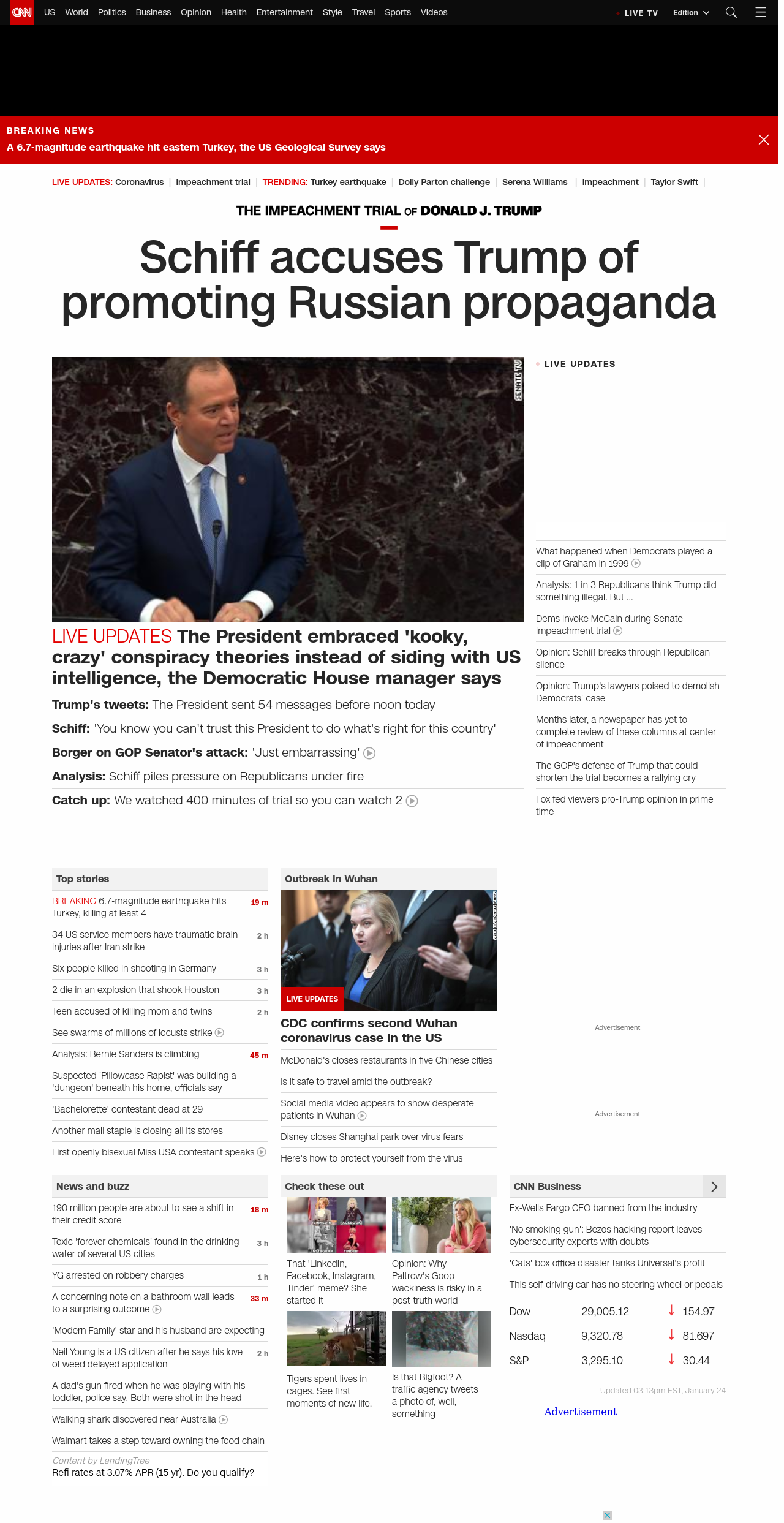 ” , title: “CNN – Breaking News, Latest News and Videos” , siblings: {“articleList”:[{“uri”:”/2020/01/24/politics/senate-impeachment-trial-day-4/index.html”,”headline”:”u003cstrong>Schiff: u003c/strong>’You know you can’t trust this President to do what’s right for this country'”,”thumbnail”:”//cdn.cnn.com/cnnnext/dam/assets/200124121859-02-schiff-impeachment-managers-arrive-0123-small-11.jpg”,”duration”:””,”description”:”House Intelligence Chairman u003ca href=”https://www.cnn.com/2020/01/22/politics/adam-schiff-senate-impeachment-trial-2020/index.html” target=”_blank”>Adam Schiff u003c/a>and the u003ca href=”https://www.cnn.com/2020/01/15/politics/what-is-an-impeachment-manager-explainer/index.html” target=”_blank”>impeachment managers u003c/a>finish their opening arguments on Friday in what’s their final chance to make an uninterrupted pitch to senators on the fence that they should hear from more witnesses in the impeachment trial of President Donald Trump.”,”layout”:””