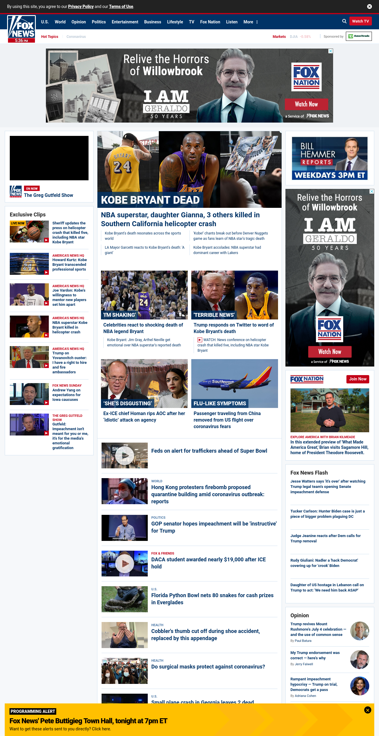 FN: [[KOBE BRYANT DEAD]] NBA superstar, 4 others killed in Southern California helicopter crash ((lubuntu at wor1))