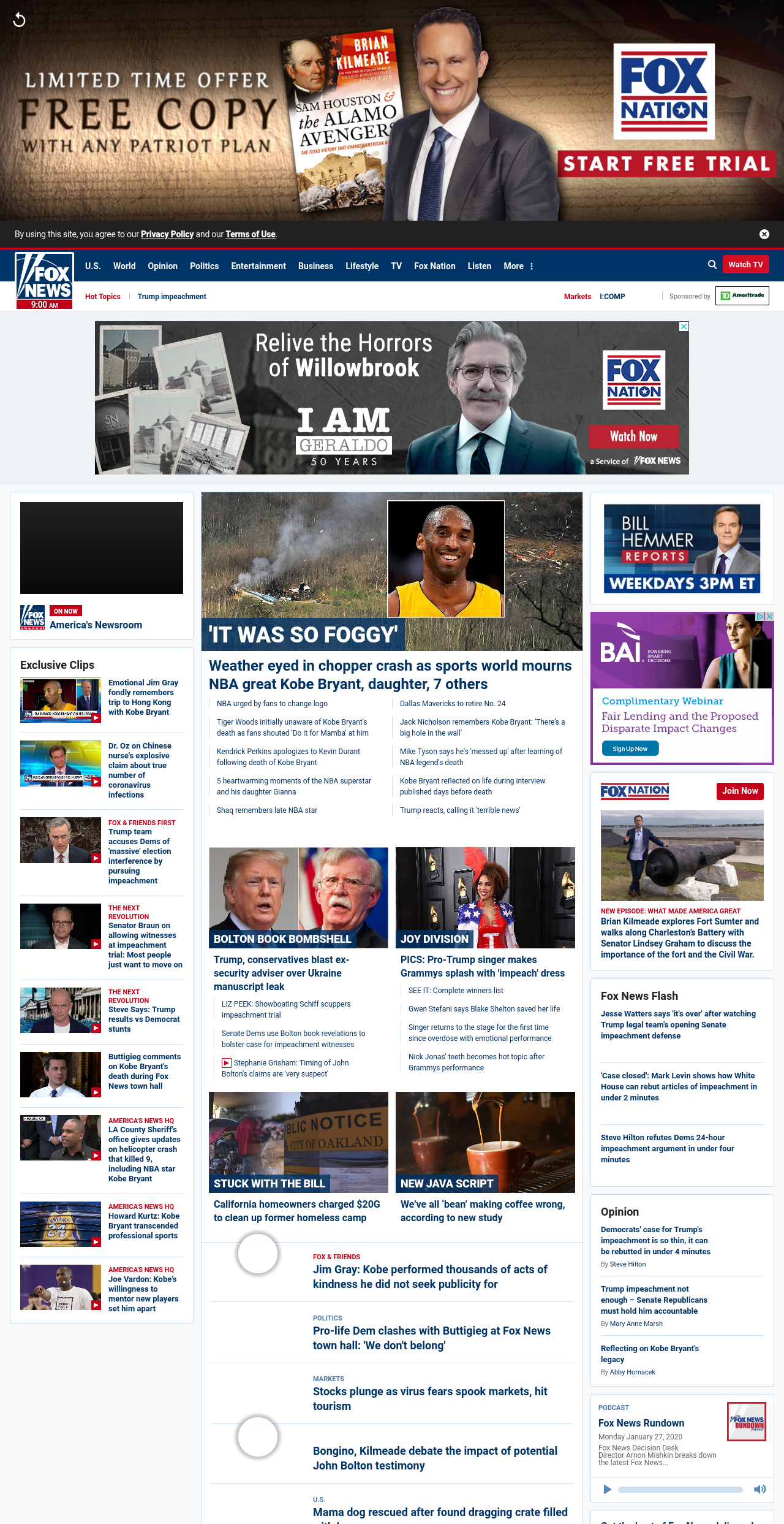 FN: [[' IT WAS SO FOGGY' ]] Weather eyed in chopper crash as sports world mourns NBA great Kobe Bryant, daughter, 7 others ((lubuntu at wor1))