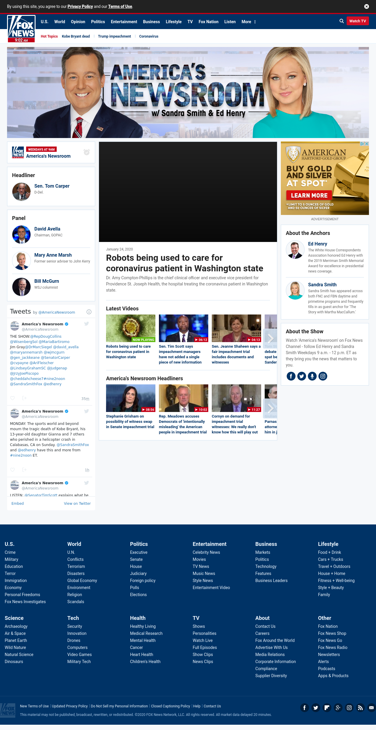 AN: Robots being used to care for coronavirus patient in Washington state ((americasnewsroom__)) ((lubuntu at wor1))