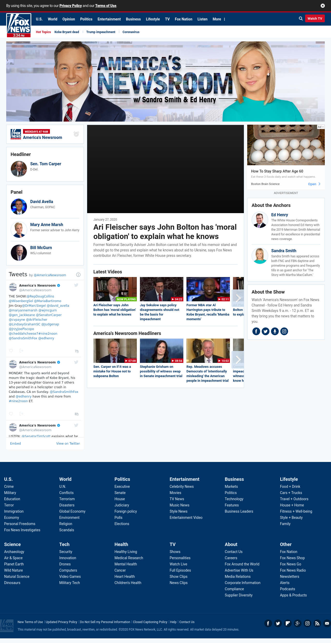 AN: Ari Fleischer says John Bolton has ‘moral obligation’ to explain what he knows ((americasnewsroom__)) ((lubuntu at wor1))