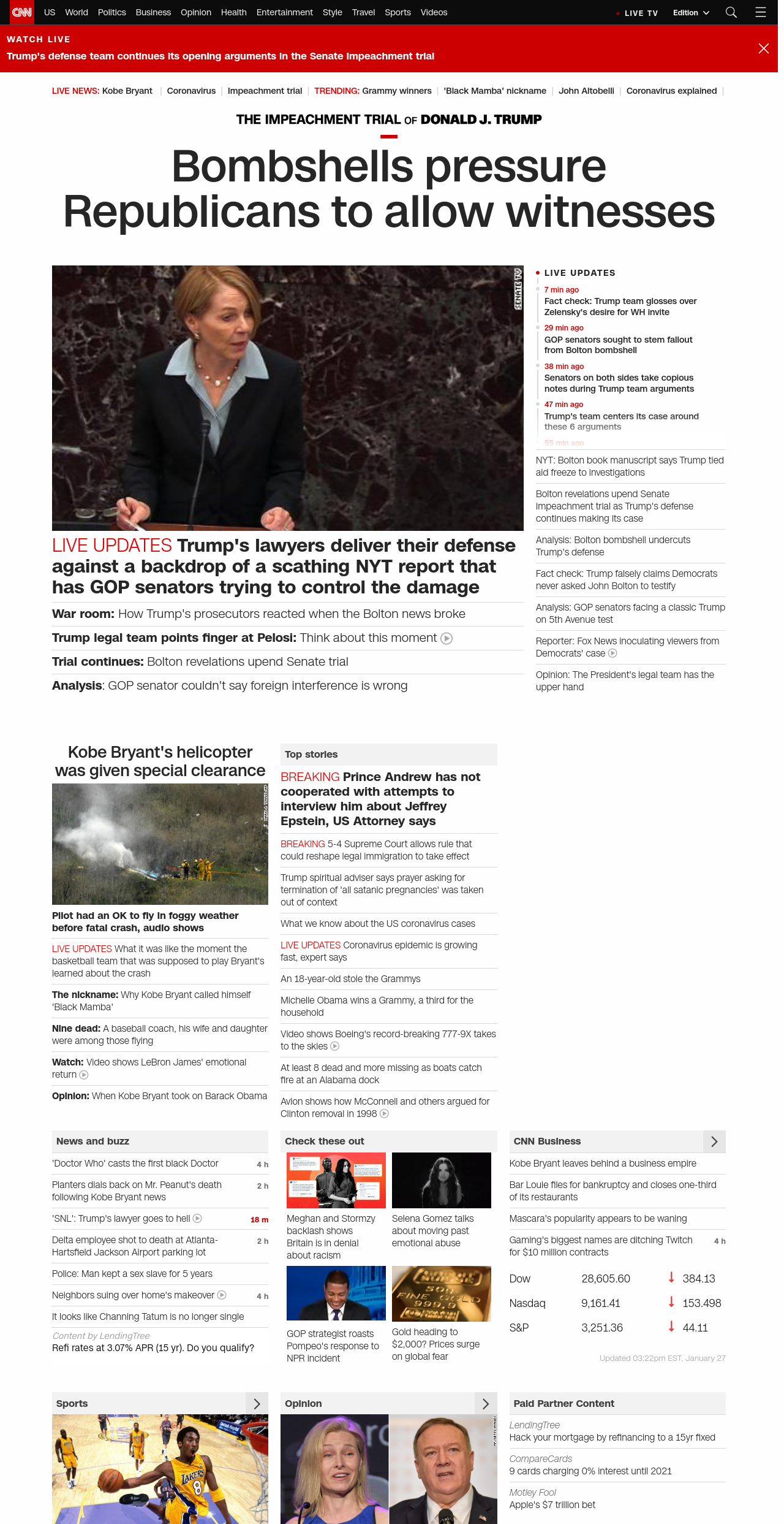 ” , title: “CNN – Breaking News, Latest News and Videos” , siblings: {“articleList”:[{“uri”:”/politics/live-news/trump-impeachment-trial-01-27-20/index.html”,”headline”:”u003cstrong>Trump’s lawyers deliver their defense against a backdrop of a scathing NYT report that has GOP senators trying to control the damageu003c/strong>”,”thumbnail”:”//cdn.cnn.com/cnnnext/dam/assets/200127153930-07-impeachment-trial-0127-philbin-small-11.jpg”,”duration”:””,”description”:””,”layout”:””