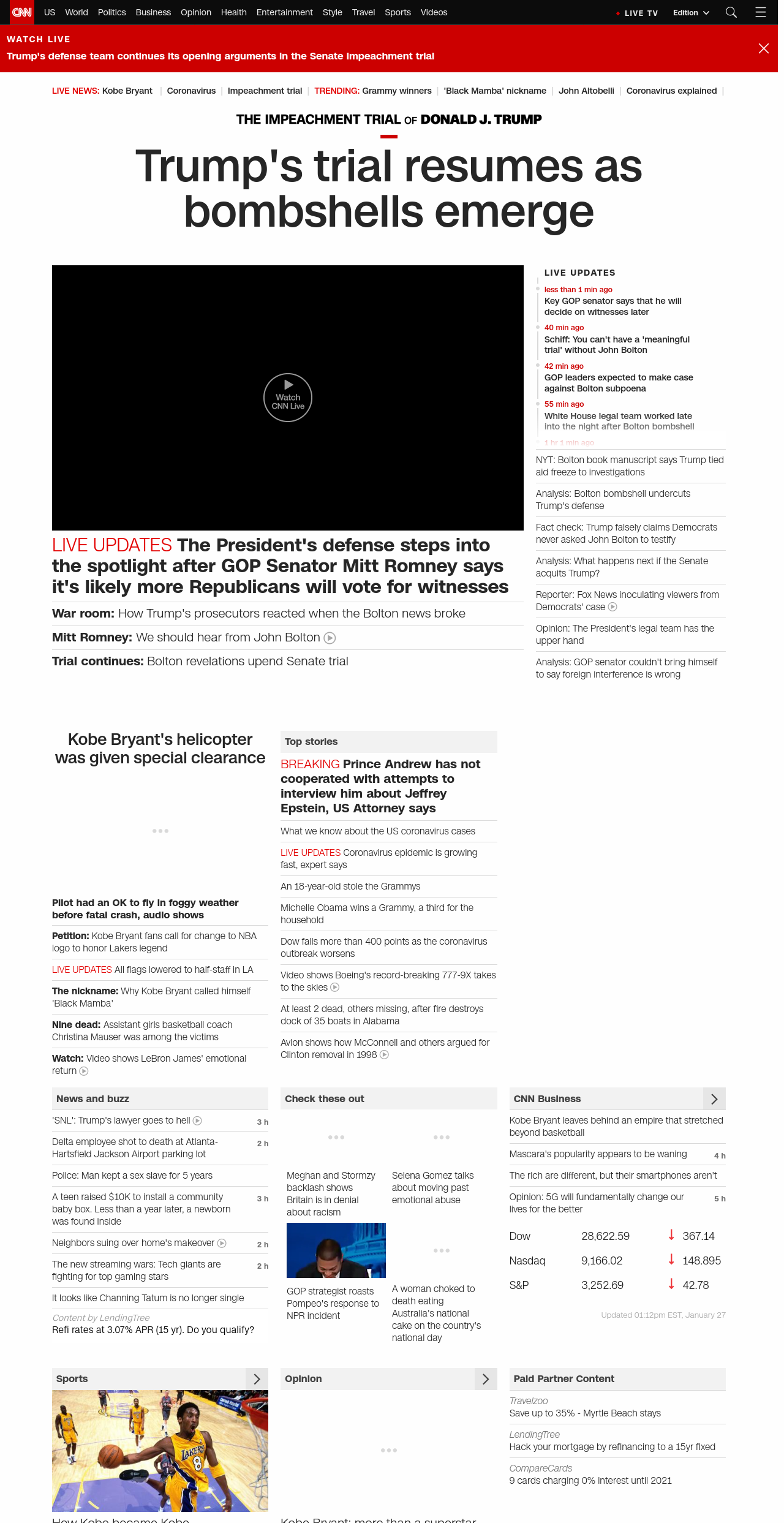 ” , title: “CNN – Breaking News, Latest News and Videos” , siblings: {“articleList”:[{“uri”:”/politics/live-news/trump-impeachment-trial-01-27-20/index.html”,”headline”:”u003cstrong>The President’s defense steps into the spotlight after GOP Senator Mitt Romney says it’s likely more Republicans will vote for witnessesu003c/strong>”,”thumbnail”:”//cdn.cnn.com/cnnnext/dam/assets/200125122142-01-trump-team-0125-small-11.jpg”,”duration”:””,”description”:””,”layout”:””