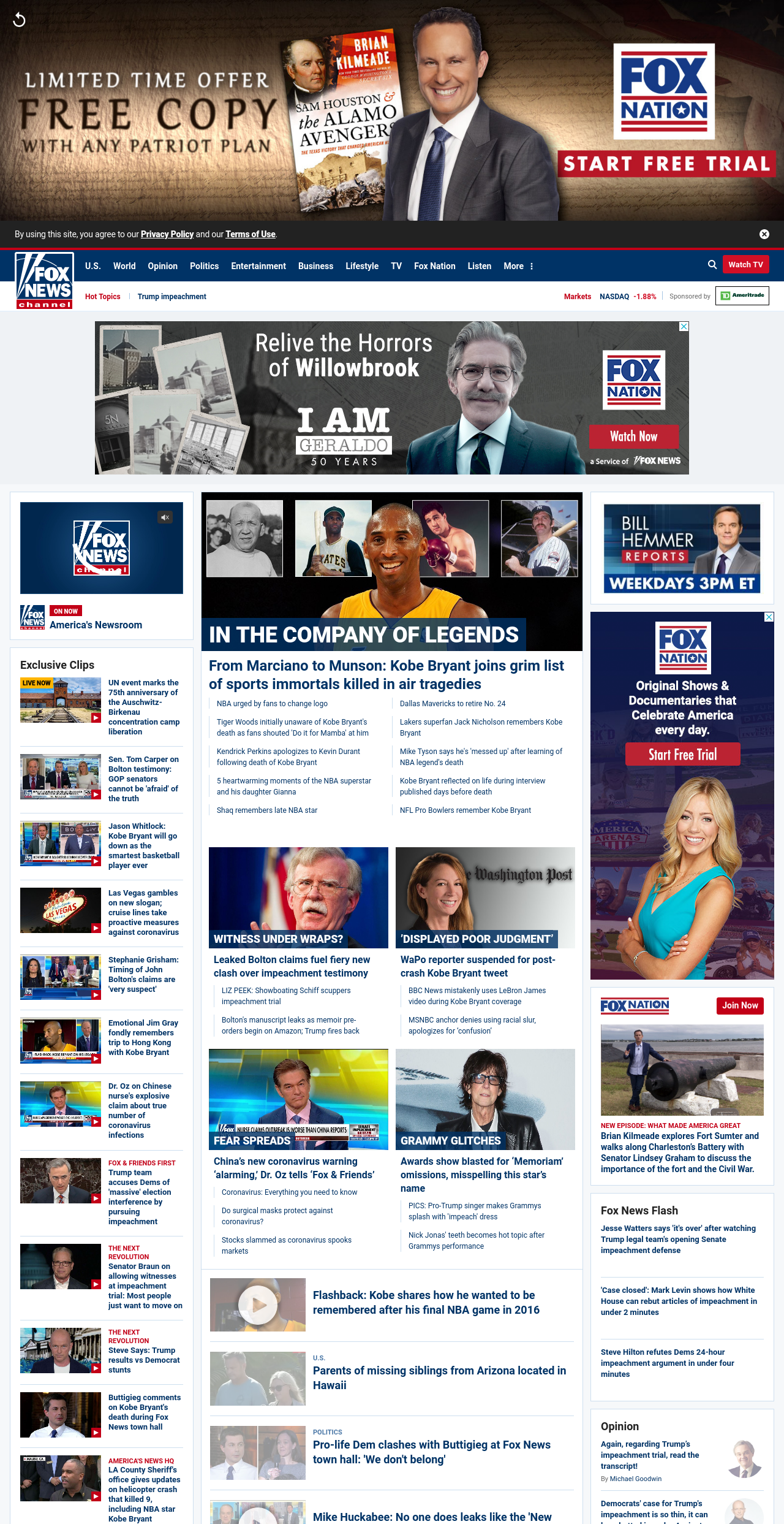 FN: [[IN THE COMPANY OF LEGENDS]] From Marciano to Munson: Kobe Bryant joins grim list of sports immortals killed in air tragedies ((lubuntu at wor1))