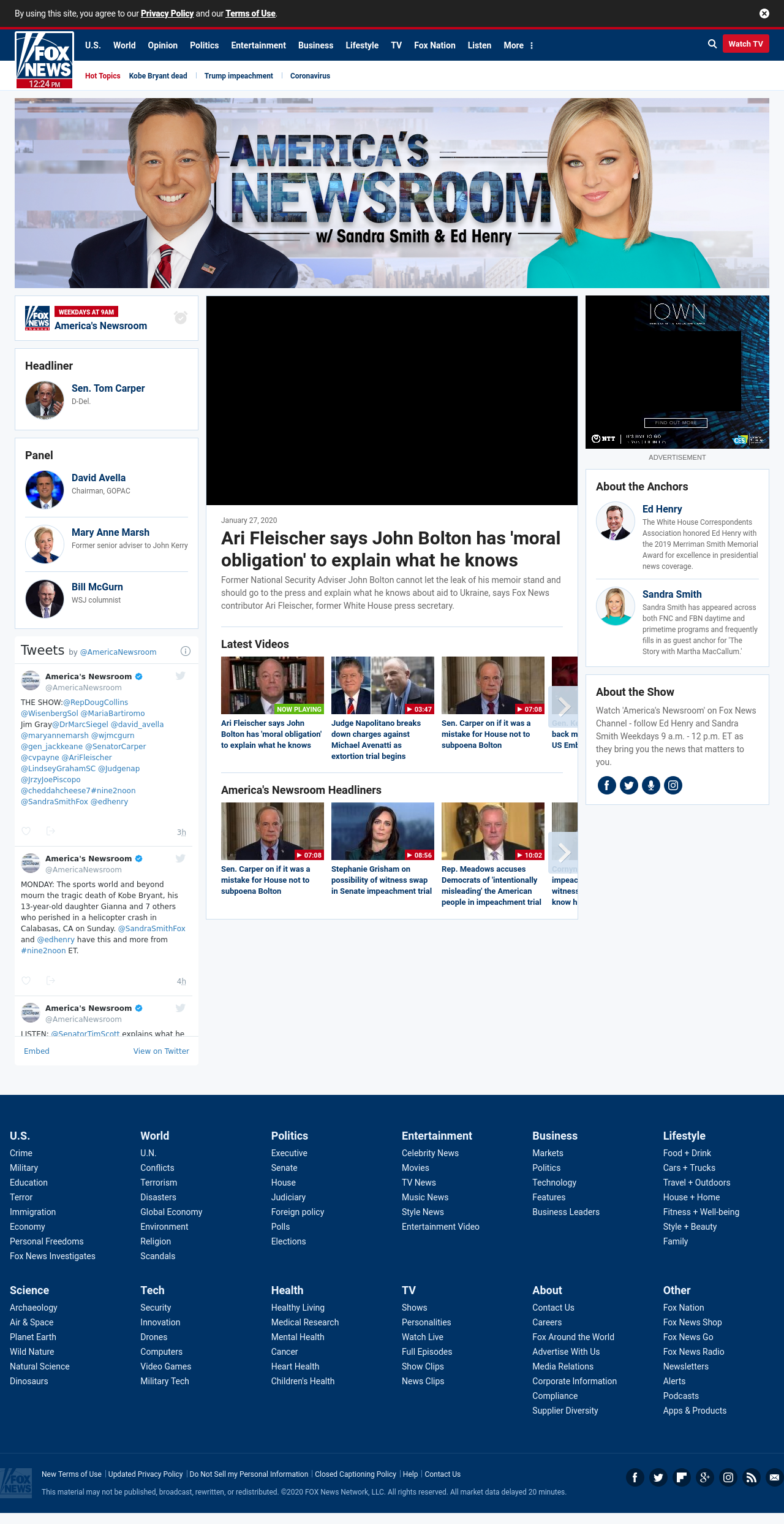AN: Ari Fleischer says John Bolton has ‘moral obligation’ to explain what he knows ((americasnewsroom__)) ((lubuntu at wor1))