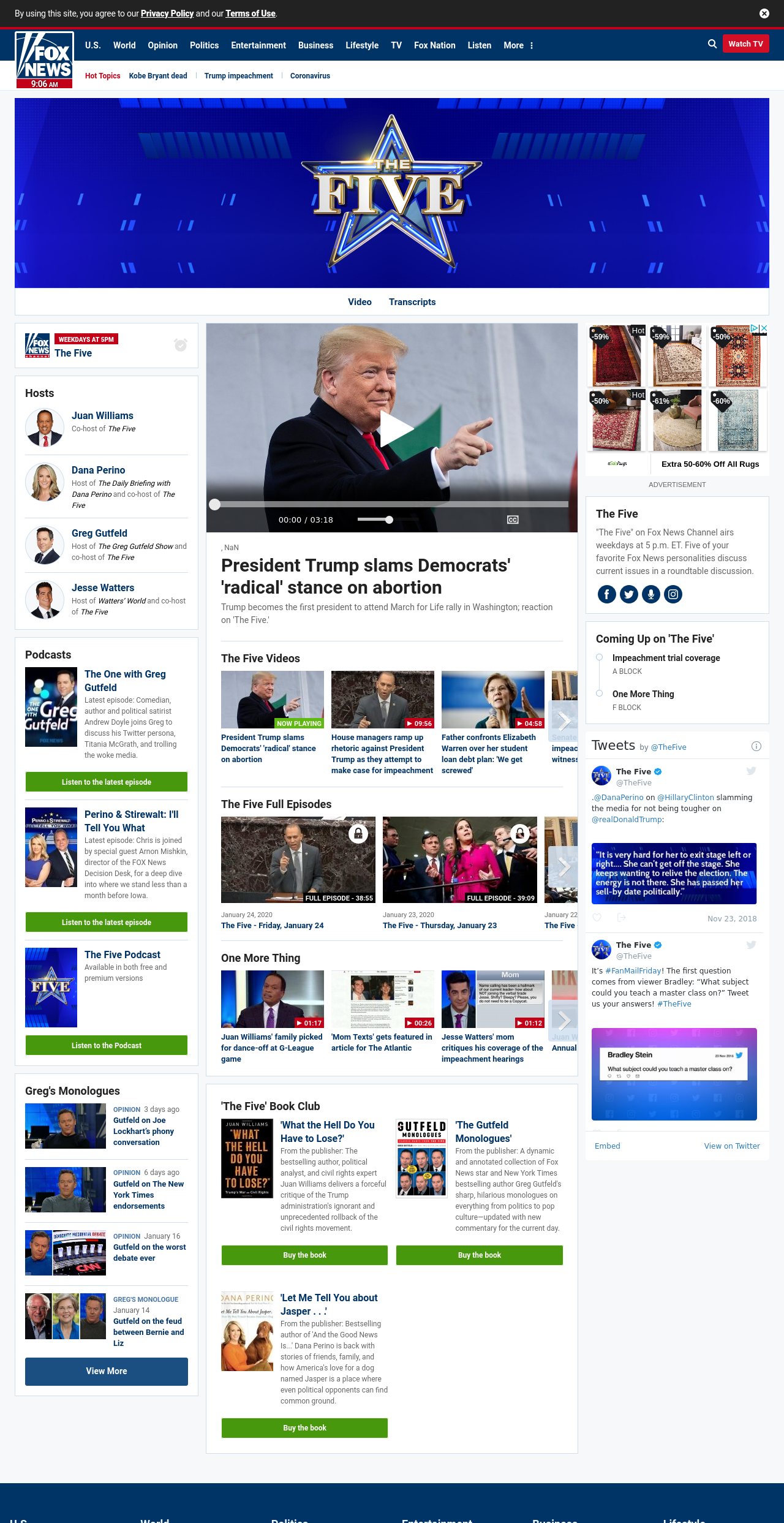 FI: President Trump slams Democrats’ ‘radical’ stance on abortion ((thefive___________)) ((lubuntu at wor1)) Trump becomes the first president to attend March for Life rally in Washington; reaction on ‘The Five.’