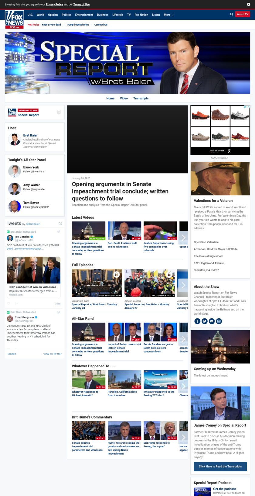 SR: Opening arguments in Senate impeachment trial conclude; written questions to follow ((specialreportbaier)) ((lubuntu at wor1)) Reaction and analysis from the ‘Special Report’ All-Star panel