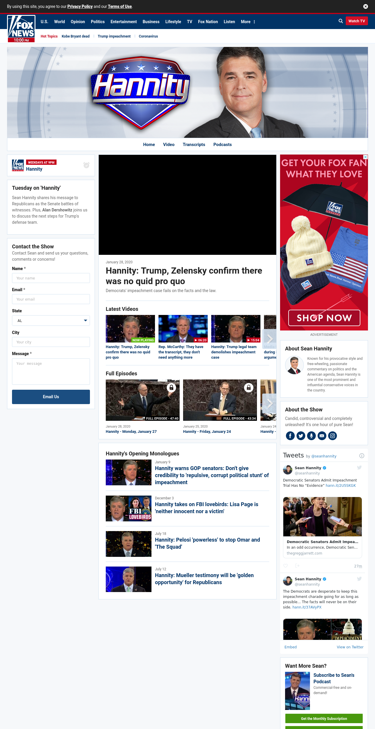 HA: Hannity: Trump, Zelensky confirm there was no quid pro quo ((hannity___________)) ((lubuntu at wor1)) Democrats’ impeachment case fails on the facts and the law.