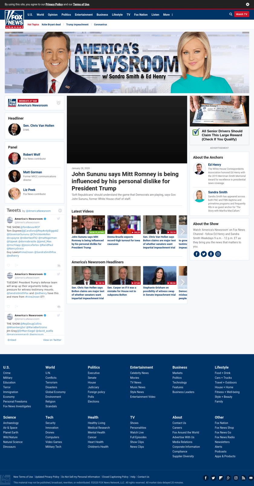 AN: John Sununu says Mitt Romney is being influenced by his personal dislike for President Trump ((americasnewsroom__)) ((lubuntu at wor1))