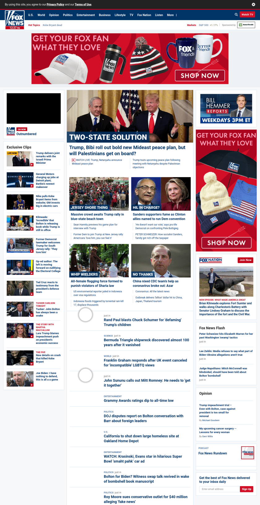 FN: [[TWO-STATE SOLUTION]] Trump, Bibi roll out bold new Mideast peace plan, but will Palestinians get on board? ((lubuntu at wor1))