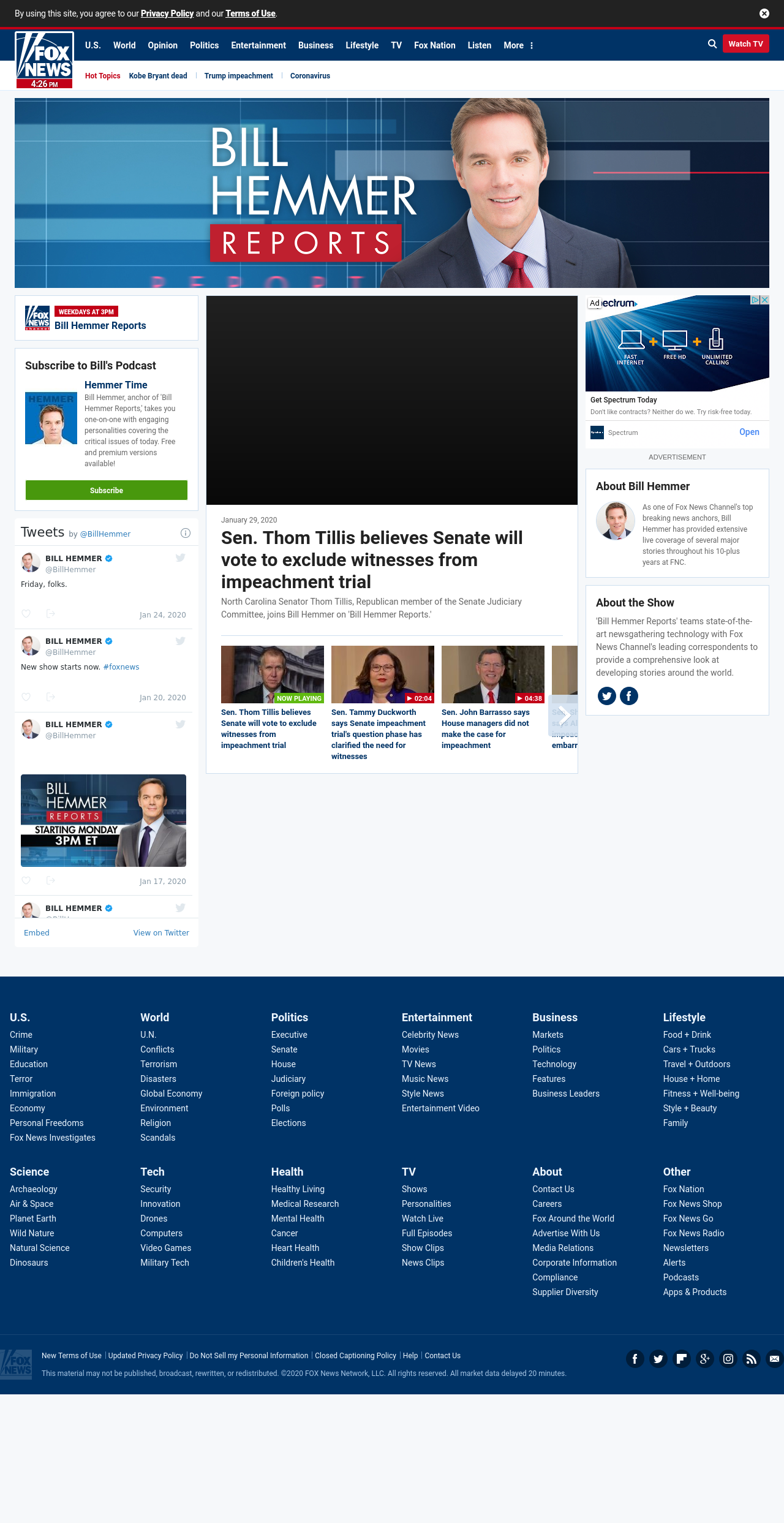 BH: Sen. Thom Tillis believes Senate will vote to exclude witnesses from impeachment trial ((billhemmer________)) ((lubuntu at wor1))