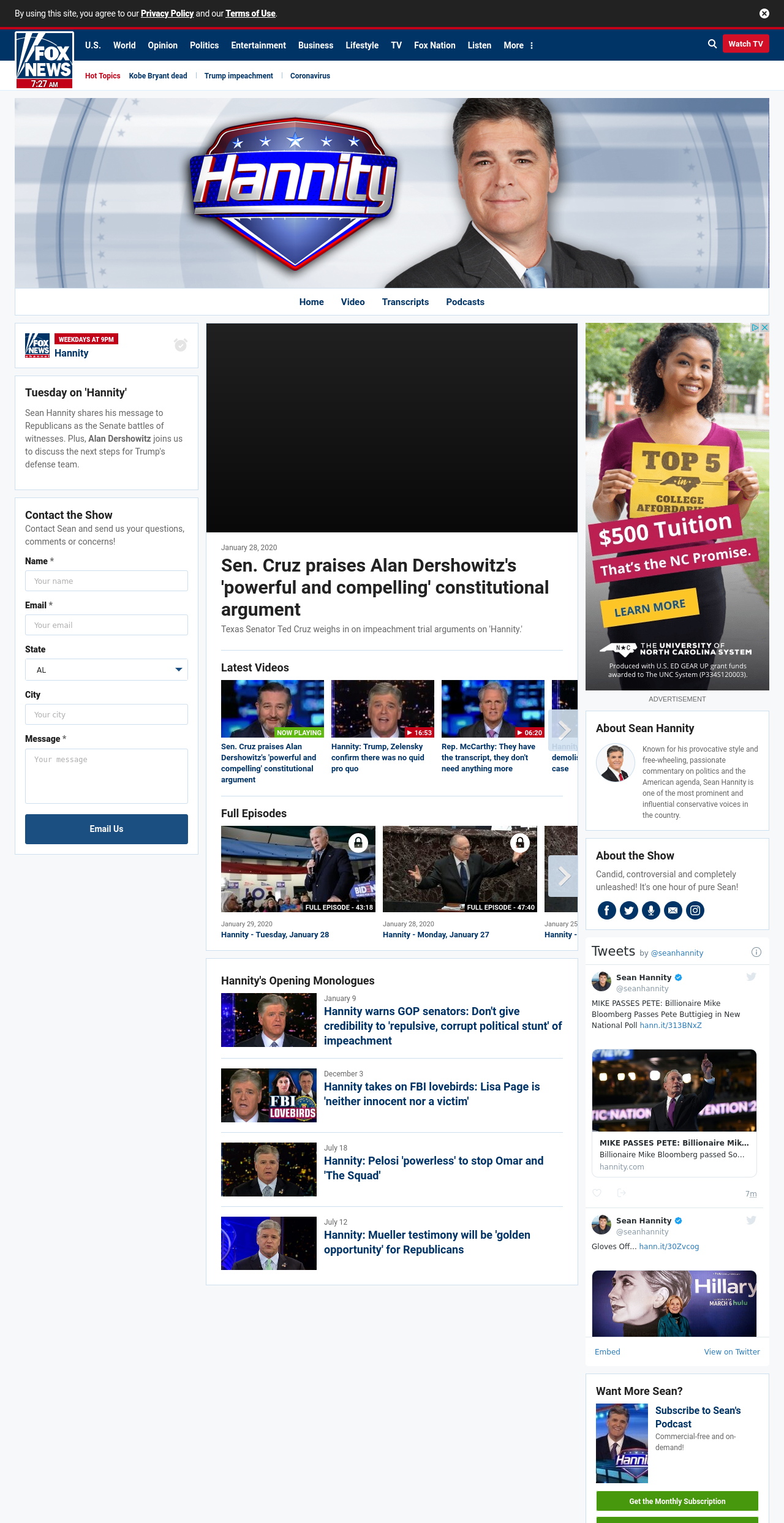 HA: Sen. Cruz praises Alan Dershowitz’s ‘powerful and compelling’ constitutional argument ((hannity___________)) ((lubuntu at wor1)) Texas Senator Ted Cruz weighs in on impeachment trial arguments on ‘Hannity.’