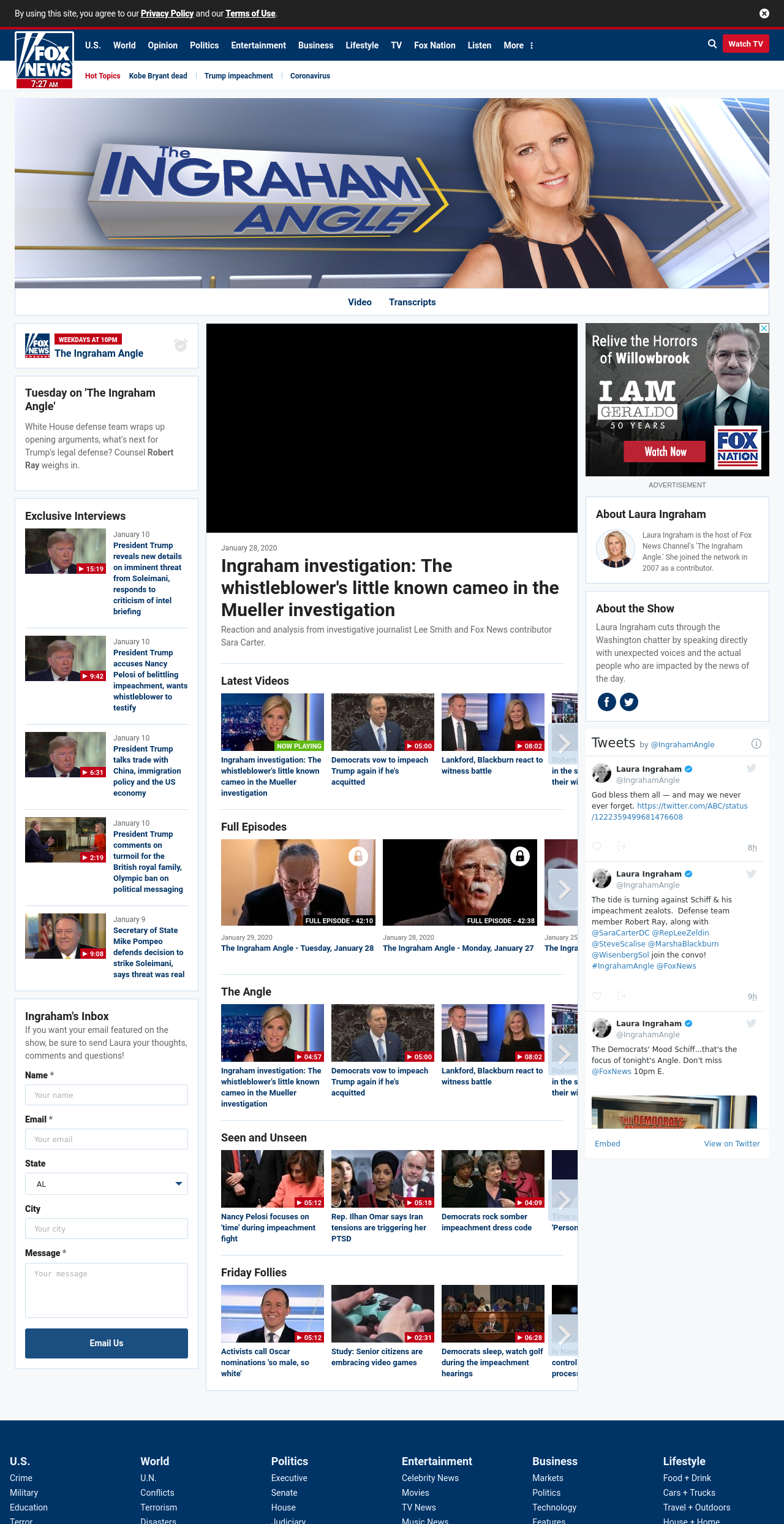 IA: Ingraham investigation: The whistleblower’s little known cameo in the Mueller investigation ((ingramangle_______)) ((lubuntu at wor1)) Reaction and analysis from investigative journalist Lee Smith and Fox News contributor Sara Carter.