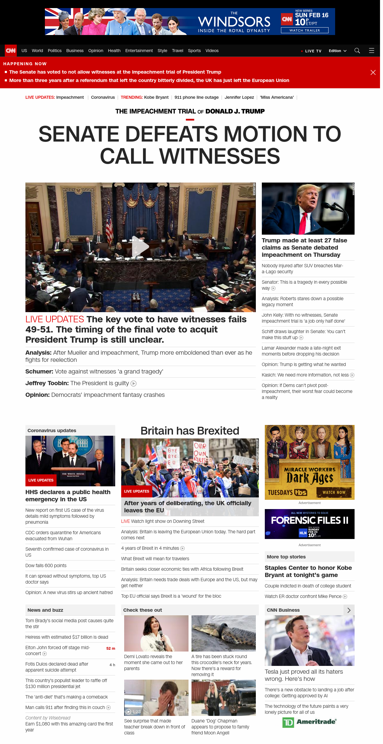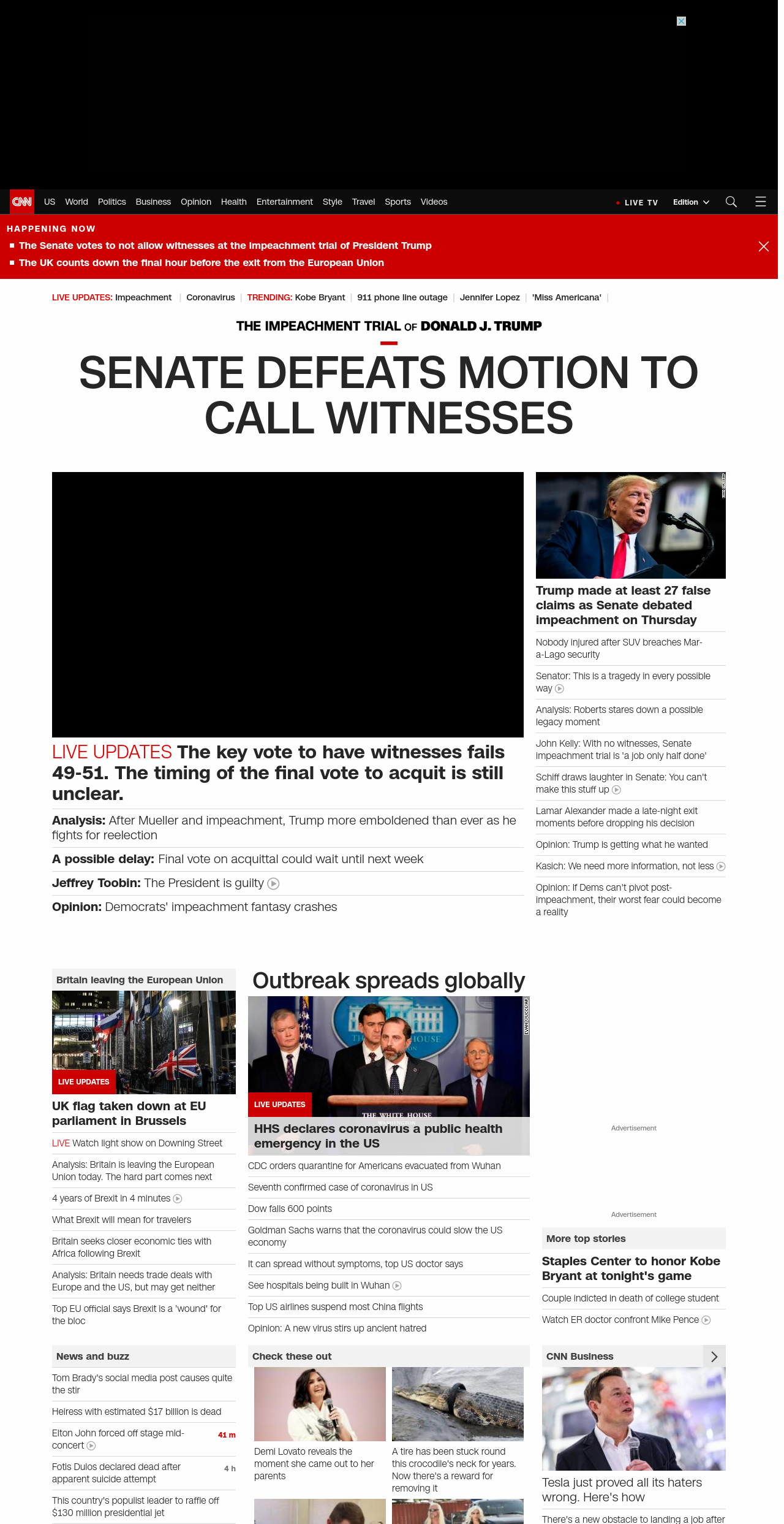 ” , title: “CNN – Breaking News, Latest News and Videos” , siblings: {“articleList”:[{“uri”:”/politics/live-news/trump-impeachment-trial-01-31-20/index.html”,”headline”:”u003cstrong>The key vote to have witnesses fails 49-51. The timing of the final vote to acquit is still unclear.u003c/strong>”,”thumbnail”:”//cdn.cnn.com/cnnnext/dam/assets/200131131801-01-senate-trial-0131-small-11.jpg”,”duration”:””,”description”:””,”layout”:””
