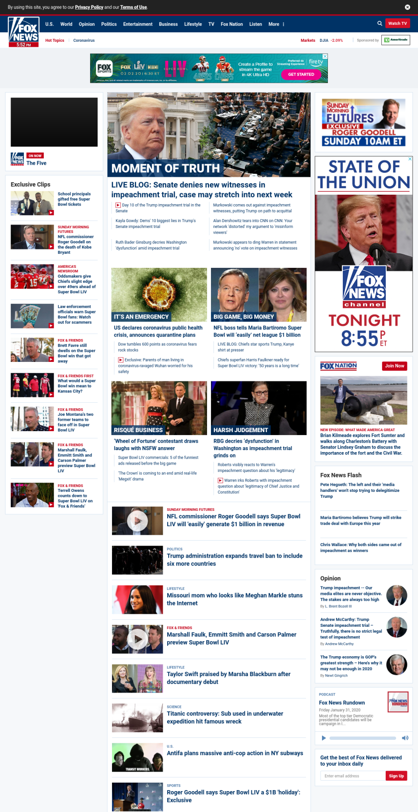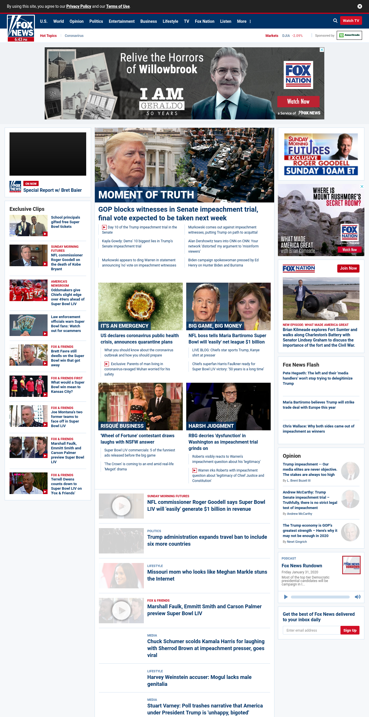 FN: [[MOMENT OF TRUTH]] GOP blocks witnesses in Senate impeachment trial, as final vote could drag to next week ((lubuntu at wor1))