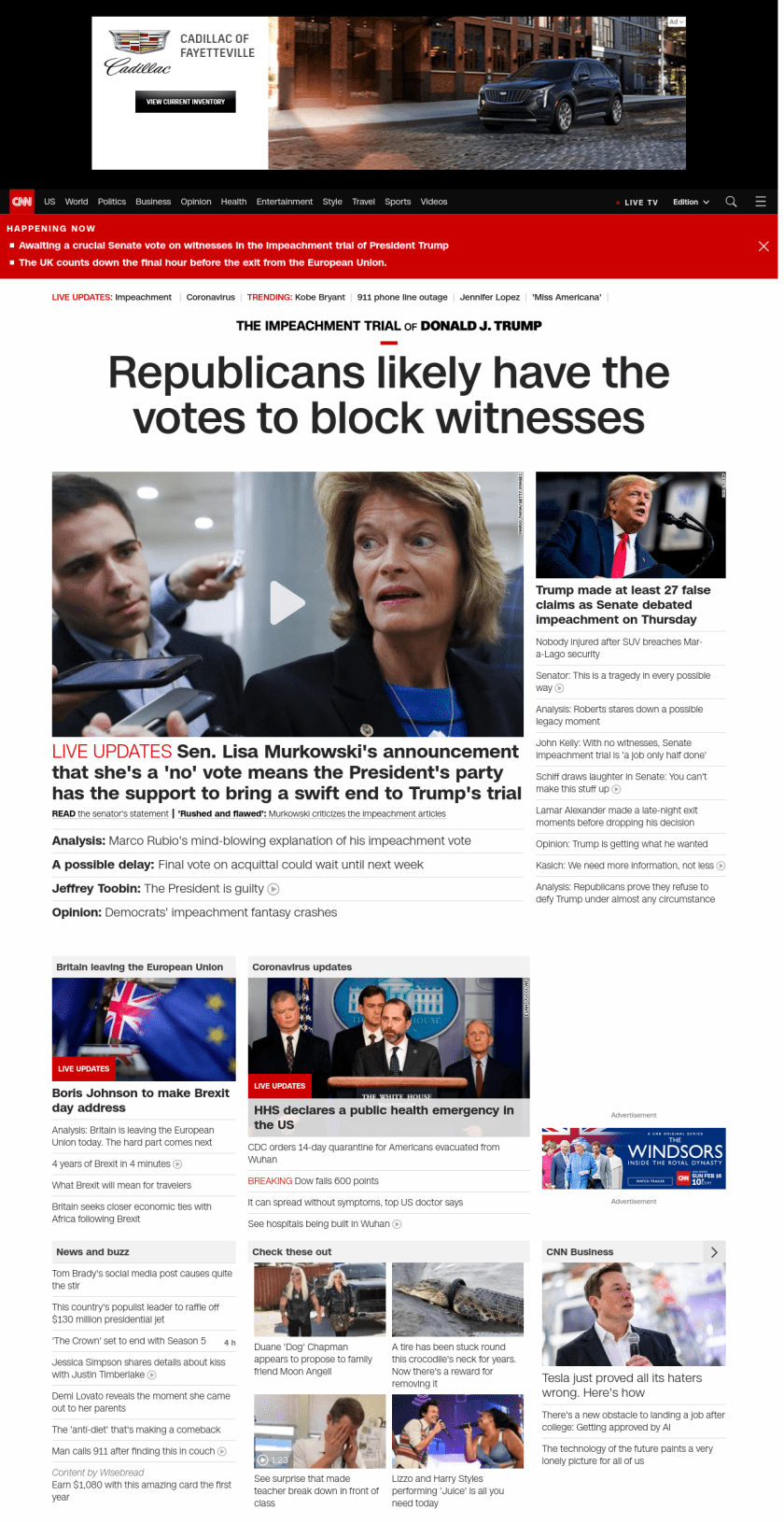 ” , title: “CNN – Breaking News, Latest News and Videos” , siblings: {“articleList”:[{“uri”:”/politics/live-news/trump-impeachment-trial-01-31-20/index.html”,”headline”:”u003cstrong>Sen. Lisa Murkowski’s announcement that she’s a ‘no’ vote means the President’s party has the support to bring a swift end to Trump’s trialu003c/strong>”,”thumbnail”:”//cdn.cnn.com/cnnnext/dam/assets/200131132404-03-murkowski-0129-small-11.jpg”,”duration”:””,”description”:”u003ca href=”https://www.cnn.com/2020/01/31/politics/murkowski-impeachment-vote-statement/index.html” target=”_blank”>u003cstrong>READu003c/strong> the senator’s statementu003c/a>u003cstrong> | u003c/strong>u003ca href=”https://www.cnn.com/2020/01/31/politics/senate-impeachment-trial-last-day/index.html” target=”_blank”>u003cstrong>’Rushed and flawed’:u003c/strong> Murkowski criticizes the impeachment articlesu003c/a>”,”layout”:””