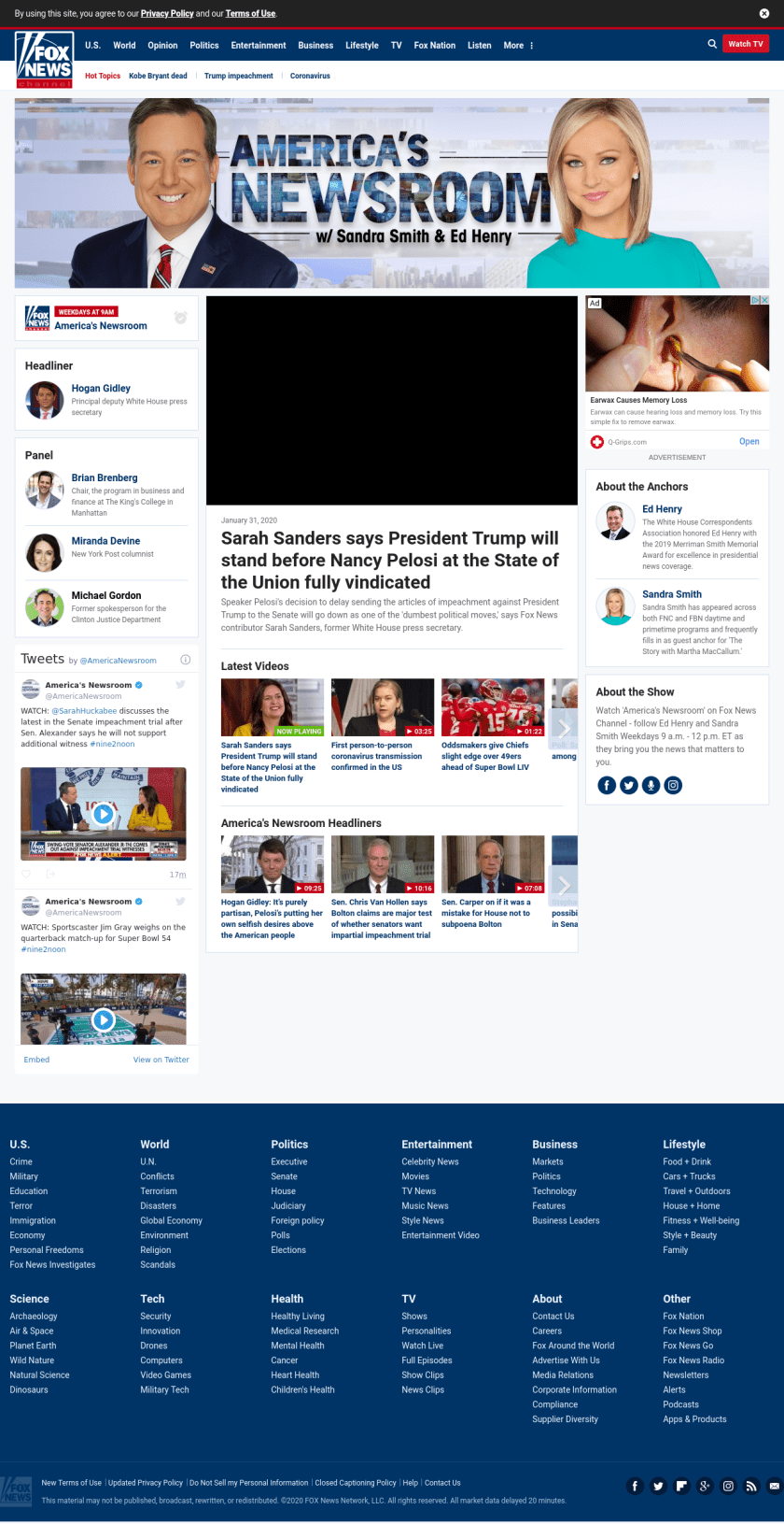 AN: Sarah Sanders says President Trump will stand before Nancy Pelosi at the State of the Union fully vindicated ((americasnewsroom__)) ((lubuntu at wor1))