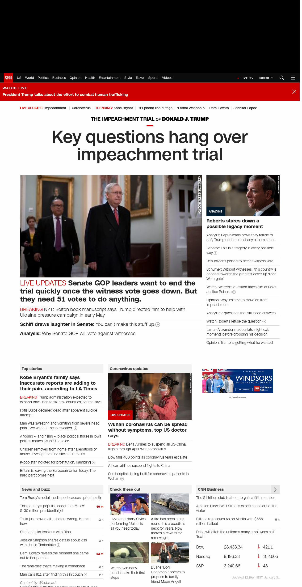 ” , title: “CNN – Breaking News, Latest News and Videos” , siblings: {“articleList”:[{“uri”:”/politics/live-news/trump-impeachment-trial-01-31-20/index.html”,”headline”:”u003cstrong>Senate GOP leaders want to end the trial quickly once the witness vote goes down. But they need 51 votes to do anything.u003c/strong>”,”thumbnail”:”//cdn.cnn.com/cnnnext/dam/assets/200129102626-01-mcconnell-0128-small-11.jpg”,”duration”:””,”description”:””,”layout”:””