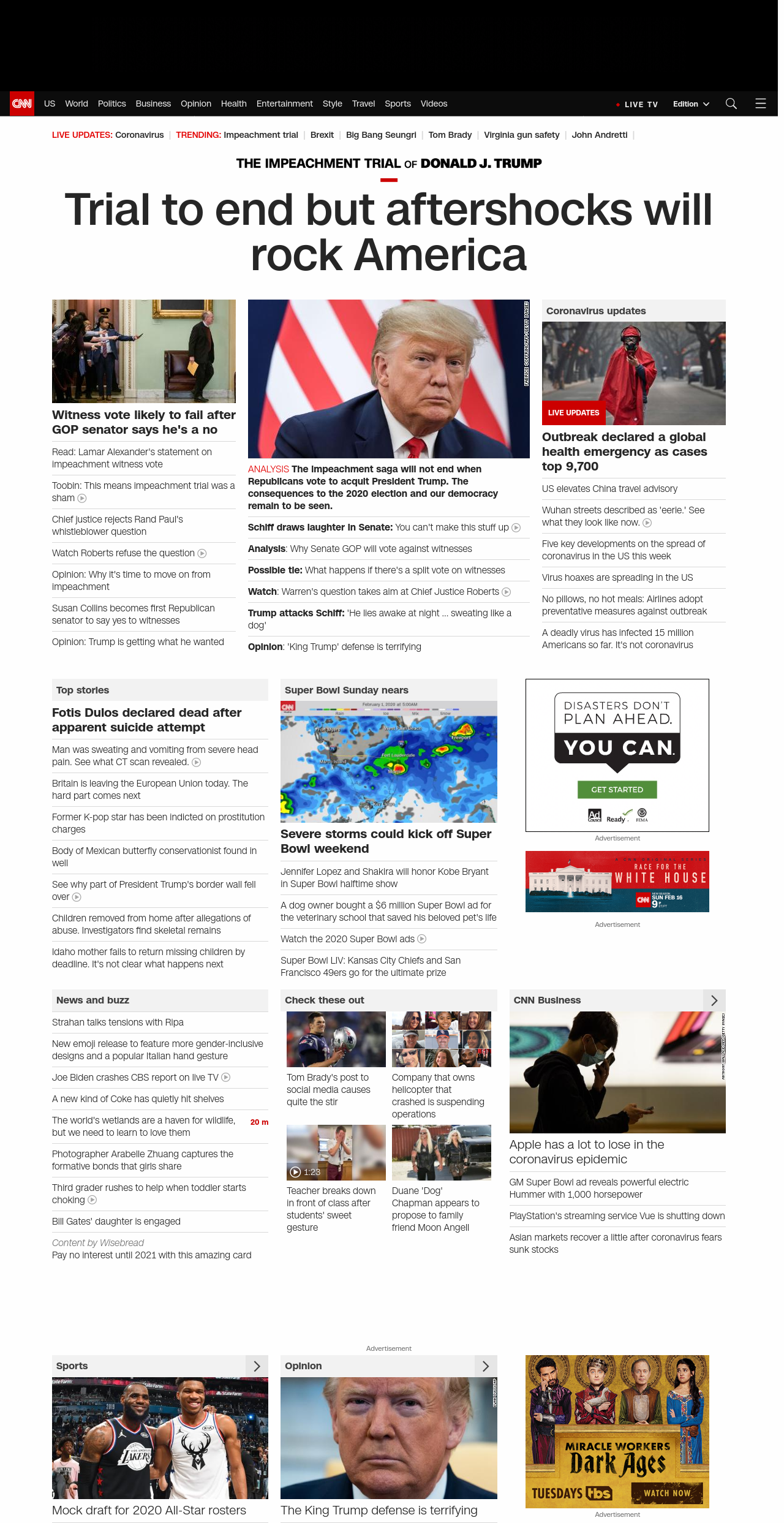 ” , title: “CNN – Breaking News, Latest News and Videos” , siblings: {“articleList”:[{“uri”:”/2020/01/30/politics/senate-impeachment-trial-second-day-of-questions/index.html”,”headline”:”u003cstrong>Witness vote likely to fail after GOP senator says he’s a nou003c/strong>”,”thumbnail”:”//cdn.cnn.com/cnnnext/dam/assets/200131092959-01-donald-trump-0131-small-11.jpg”,”duration”:””,”description”:””,”layout”:””