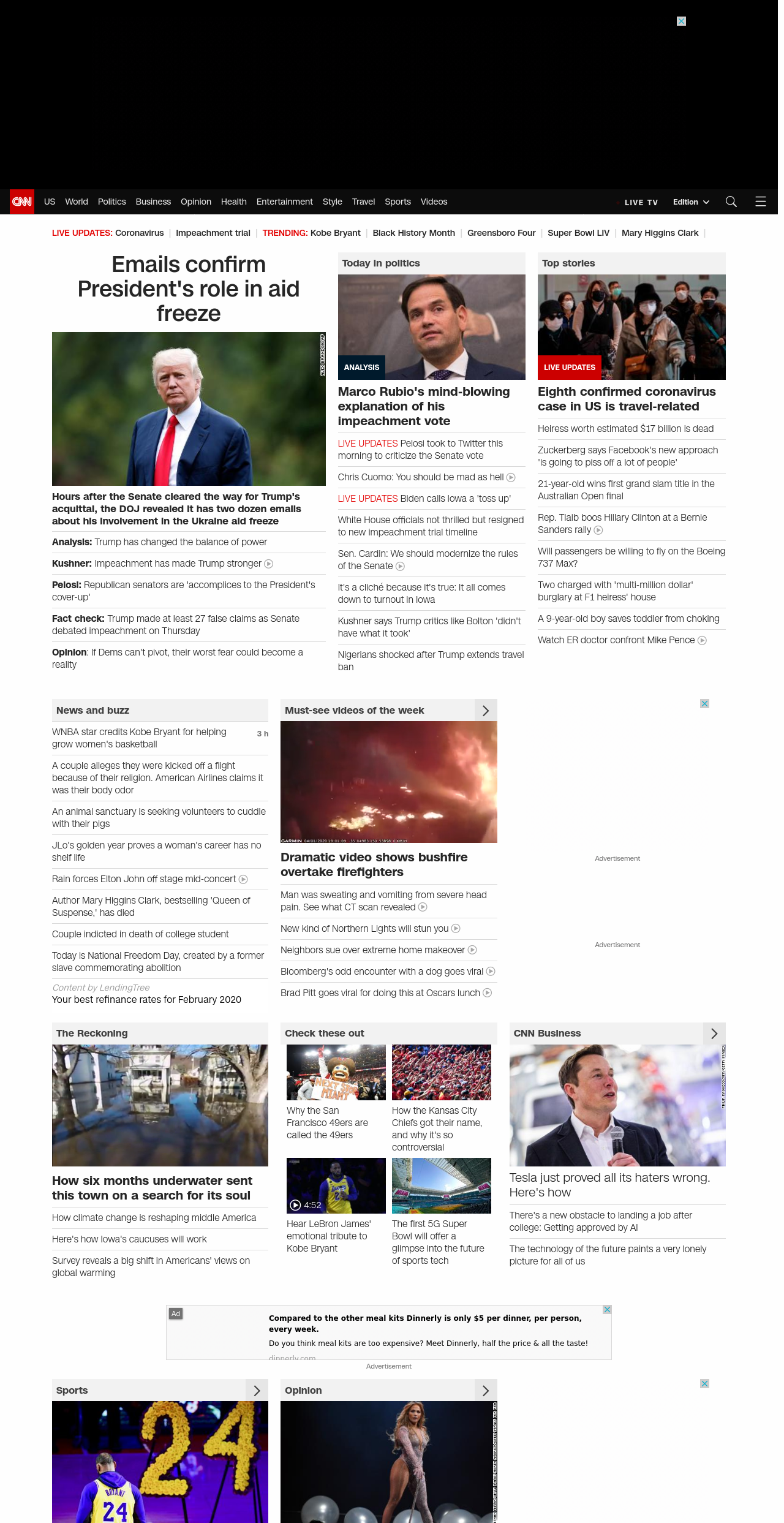 ” , title: “CNN – Breaking News, Latest News and Videos” , siblings: {“articleList”:[{“uri”:”/2020/02/01/politics/trump-ukraine-aid-emails-omb-justice-department/index.html”,”headline”:”u003cstrong>Hours after the Senate cleared the way for Trump’s acquittal, the DOJ revealed it has two dozen emails about his involvement in the Ukraine aid freezeu003c/strong>”,”thumbnail”:”//cdn.cnn.com/cnnnext/dam/assets/200131112848-106-trump-lead-image-small-11.jpg”,”duration”:””,”description”:”The Department of Justice revealed in a court filing late Friday that it has two dozen emails related to the President Donald Trump’s involvement in the withholding of millions in security assistance to Ukraine — a disclosure that came just hours after the Senate u003ca href=”https://www.cnn.com/2020/01/31/politics/senate-impeachment-trial-last-day/index.html” target=”_blank”>voted against subpoenaing additional documents and witnessesu003c/a> in Trump’s impeachment trial, paving the way for his acquittal.”,”layout”:””