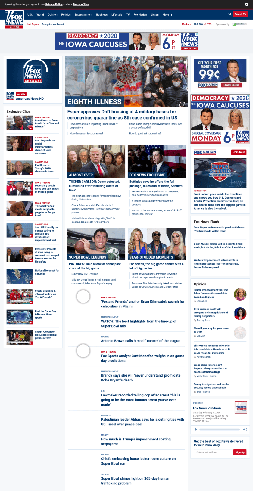 FN: [[EIGHTH ILLNESS]] Esper approves DoD housing at 4 military bases for coronavirus quarantine as 8th case confirmed in US ((lubuntu at wor1))