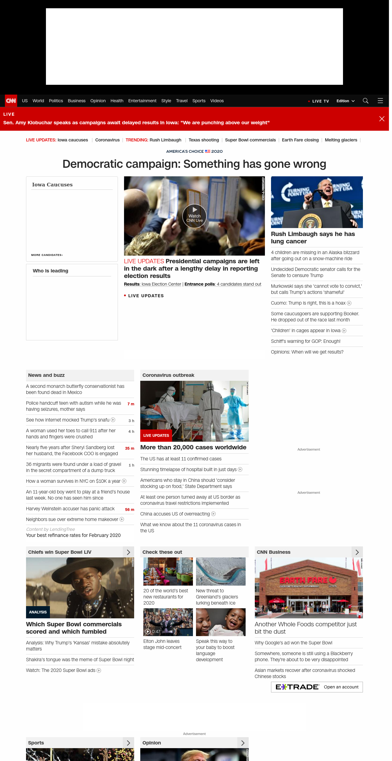 ” , title: “CNN – Breaking News, Latest News and Videos” , siblings: {“articleList”:[{“uri”:”/2020/02/03/politics/election-day-in-iowa/index.html”,”headline”:”2020 race opens as Iowa Democrats flock to caucuses eyeing Trump”,”thumbnail”:”//cdn.cnn.com/cnnnext/dam/assets/200203110846-iowa-caucus-small-11.jpg”,”duration”:””,”description”:”Thousands of Iowans u003ca href=”https://www.cnn.com/politics/live-news/iowa-caucuses-live-results-coverage-2020/index.html” target=”_blank”>are crammed into school gyms, living rooms, bars and public buildingsu003c/a> as their state’s presidential caucuses launched a marathon Democratic u003ca href=”http://www.cnn.com/2020/02/03/politics/iowa-caucuses-guide/index.html” target=”_blank”>showdown to find a candidate to do battleu003c/a> with President Donald Trump in November.”,”layout”:””