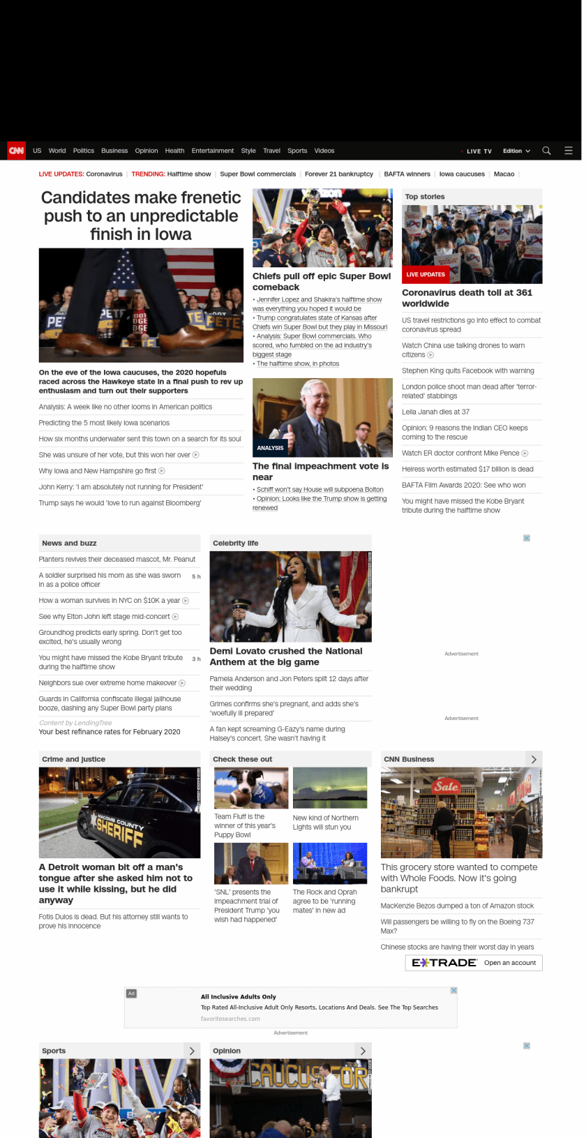 ” , title: “CNN – Breaking News, Latest News and Videos” , siblings: {“articleList”:[{“uri”:”/2020/02/03/politics/trump-senate-impeachment-trial-iowa-caucuses/index.html”,”headline”:”u003cstrong>Within 3 days this week, the impeachment trial, Iowa caucuses and ‘State of the Union’ address will unfold with the capacity to shake DC and shape the electionu003c/strong>”,”thumbnail”:”//cdn.cnn.com/cnnnext/dam/assets/200131110604-103b-trump-lead-image-small-11.jpg”,”duration”:””,”description”:”American politics has never seen anything quite like this.”,”layout”:””