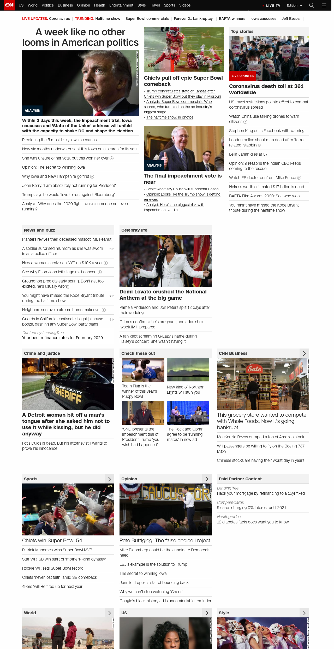 ” , title: “CNN – Breaking News, Latest News and Videos” , siblings: {“articleList”:[{“uri”:”/2020/02/03/politics/trump-senate-impeachment-trial-iowa-caucuses/index.html”,”headline”:”u003cstrong>Within 3 days this week, the impeachment trial, Iowa caucuses and ‘State of the Union’ address will unfold with the capacity to shake DC and shape the electionu003c/strong>”,”thumbnail”:”//cdn.cnn.com/cnnnext/dam/assets/200131110604-103b-trump-lead-image-small-11.jpg”,”duration”:””,”description”:”American politics has never seen anything quite like this.”,”layout”:””