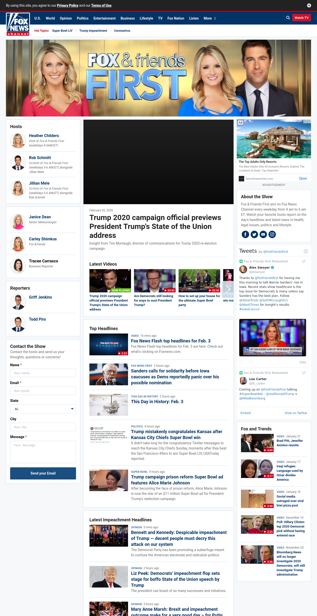 FO: Trump 2020 campaign official previews President Trump’s State of the Union address ((foxfriendsfirst___)) ((lubuntu at wor1))