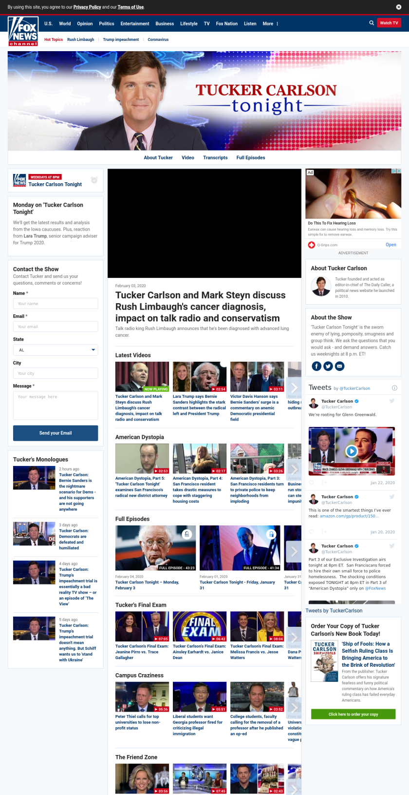 TC: Tucker Carlson and Mark Steyn discuss Rush Limbaugh’s cancer diagnosis, impact on talk radio and conservatism ((tuckercarlson_____)) ((lubuntu at wor1))