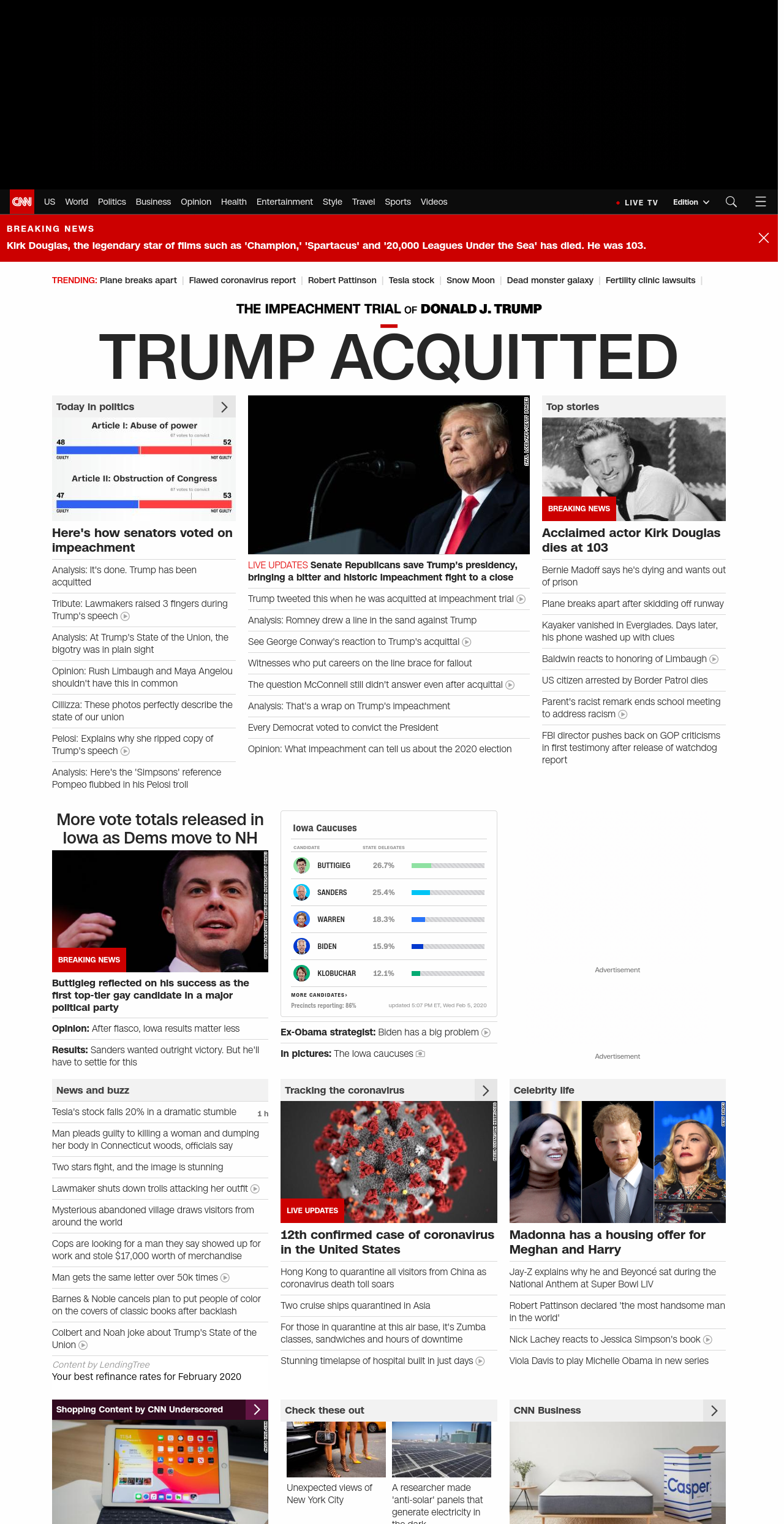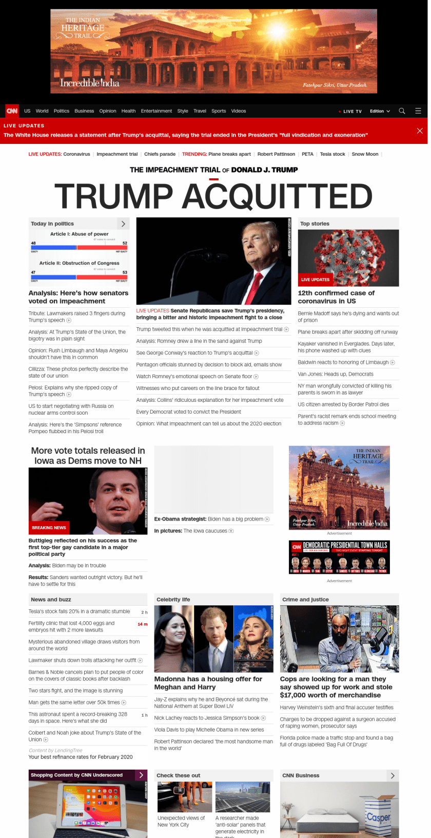 || TRUMP ACQUITTED ||” , title: “CNN – Breaking News, Latest News and Videos” , siblings: {“articleList”:[{“uri”:”/politics/live-news/cnn-town-halls-02-05-20/index.html”,”headline”:”u003cstrong>Biden to kick off CNN town hall as he trails in Iowau003c/strong>”,”thumbnail”:”//cdn.cnn.com/cnnnext/dam/assets/200205143808-01-joe-biden-new-hampshire-0205-small-11.jpg”,”duration”:””,”description”:””,”layout”:””