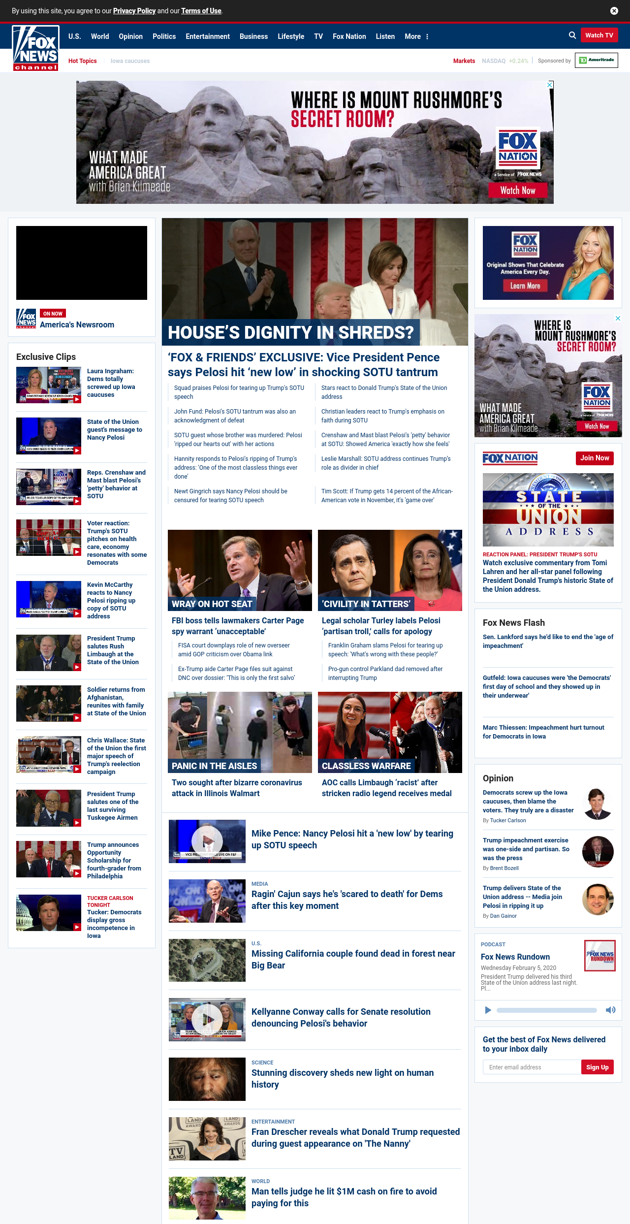 FN: [[HOUSE’S DIGNITY IN SHREDS?]] ‘FOX & FRIENDS’ EXCLUSIVE: Vice President Pence says Pelosi hit ‘new low’ in shocking SOTU tantrum ((lubuntu at wor1))
