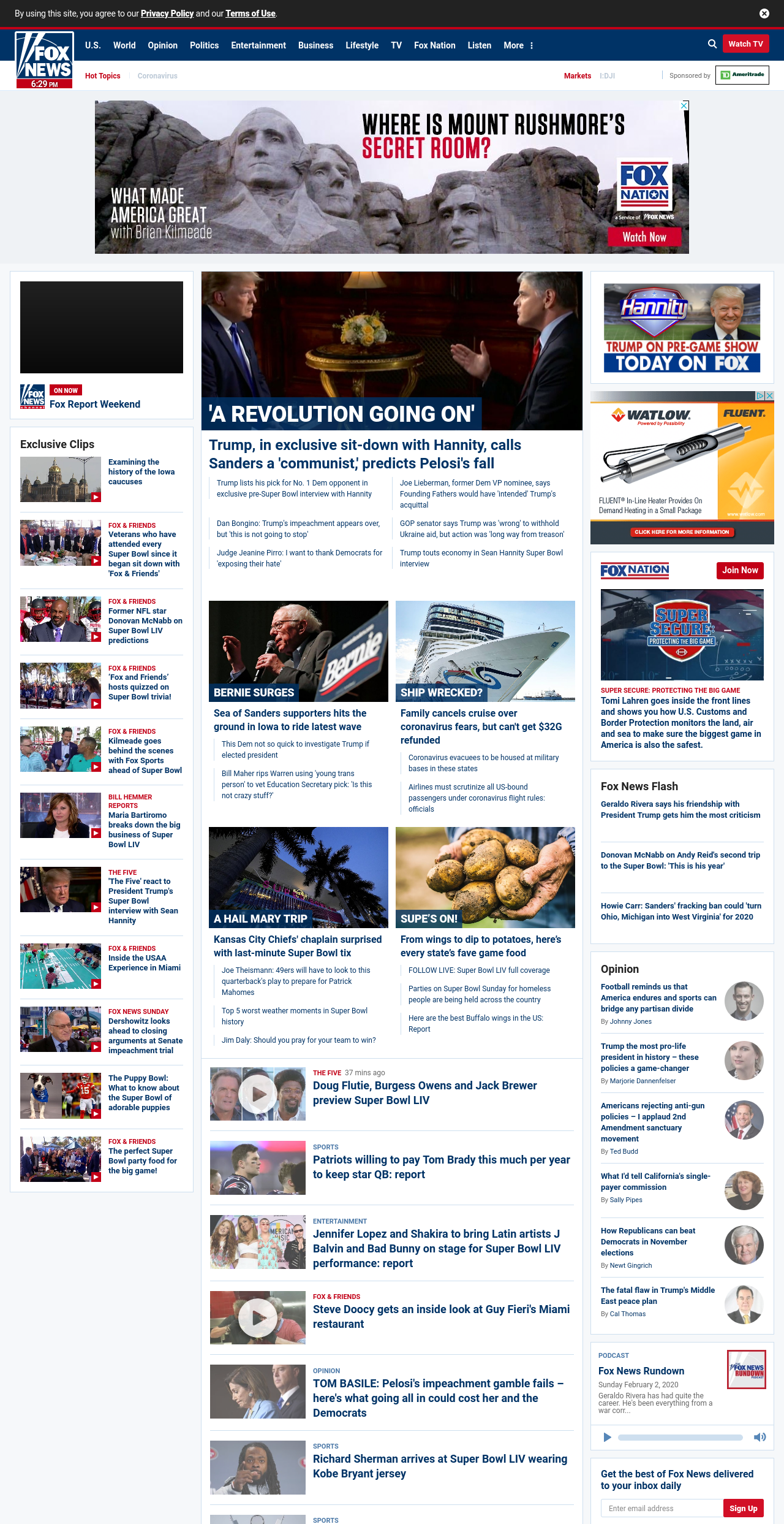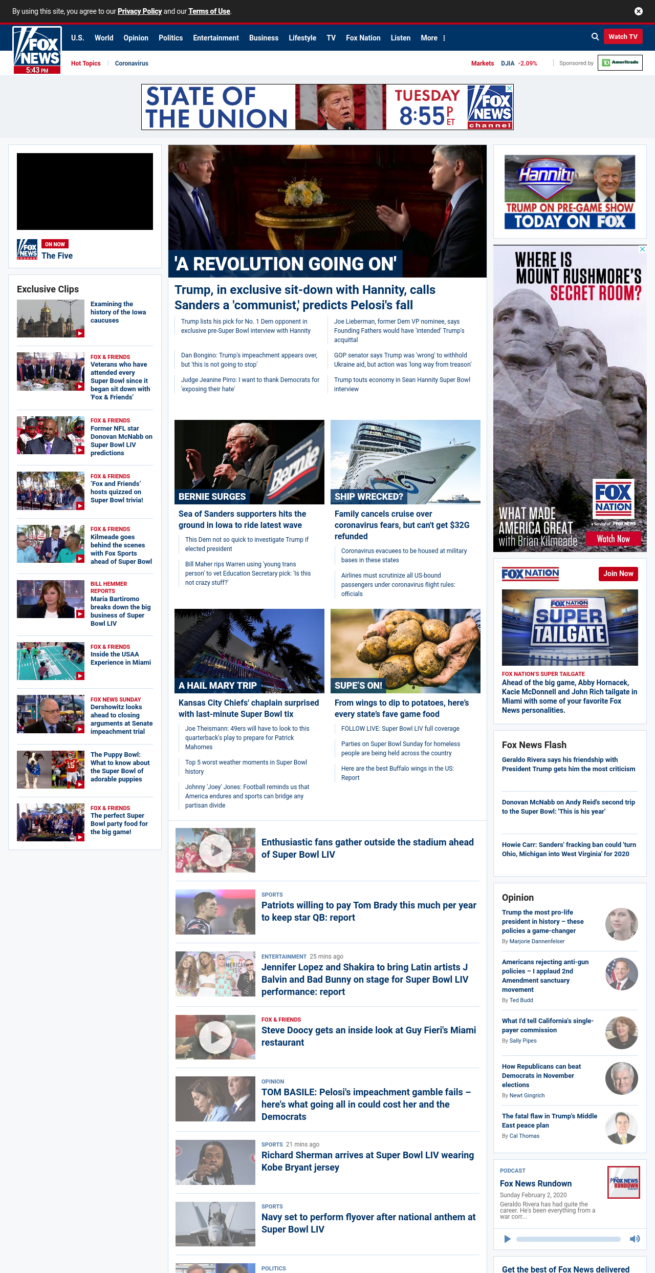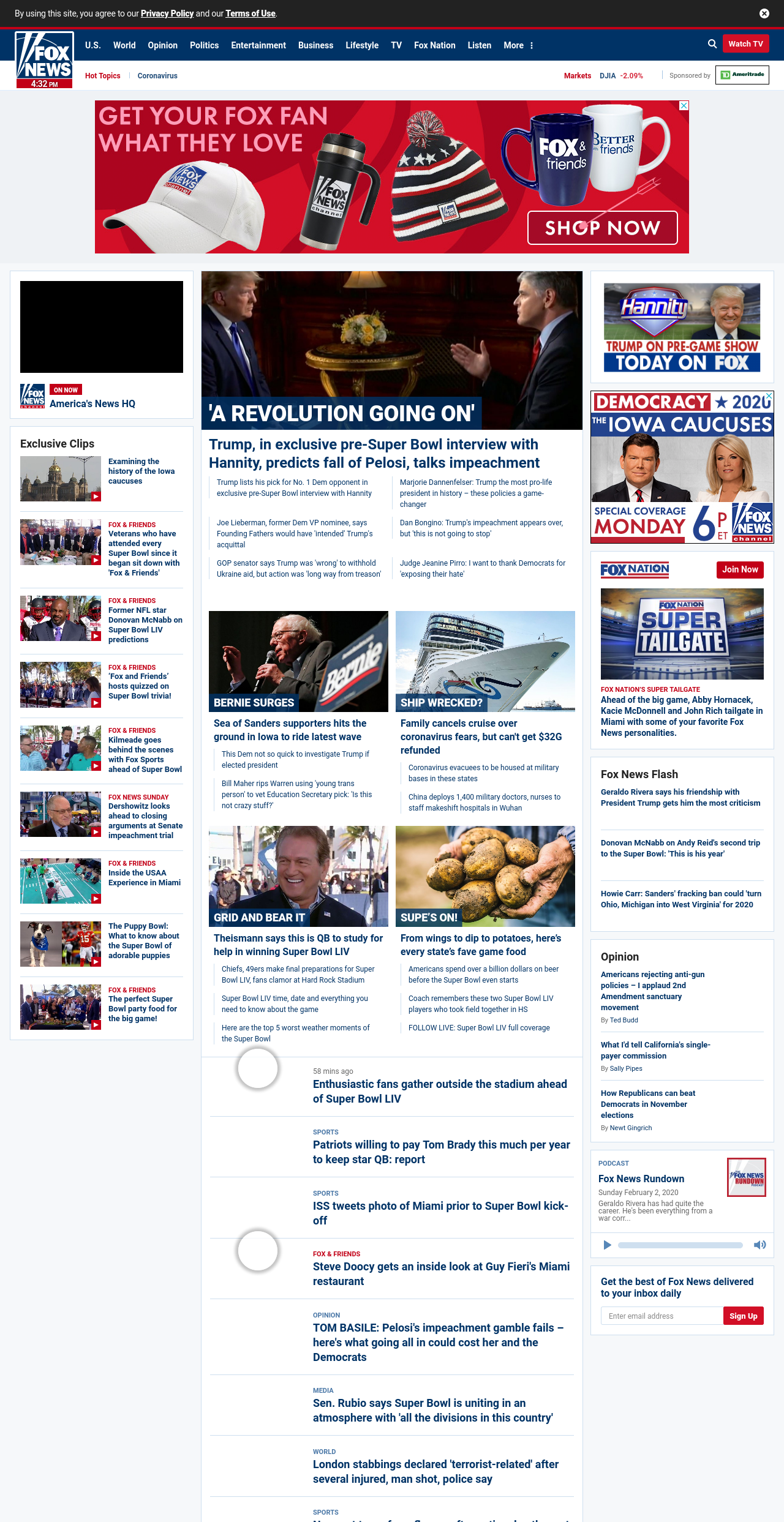 FN: [[' A REVOLUTION GOING ON' ]] Trump, in exclusive pre-Super Bowl interview with Hannity, predicts fall of Pelosi, talks impeachment ((lubuntu at wor1))
