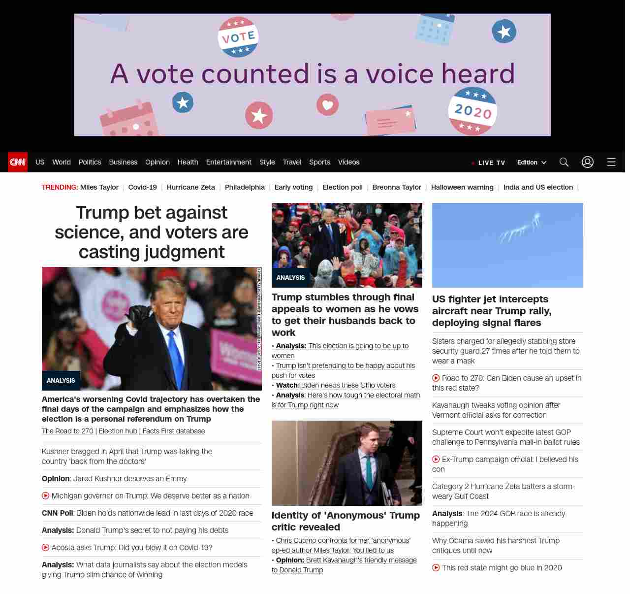 CNN2: subjectpartBANNER=|=”banner-text screaming-banner-text banner-text-size–char-47″ data-analytics=”_list-hierarchical-xs_article_”>Trump bet against science, and voters are casting judgment| ((lubuntu at wor1)))