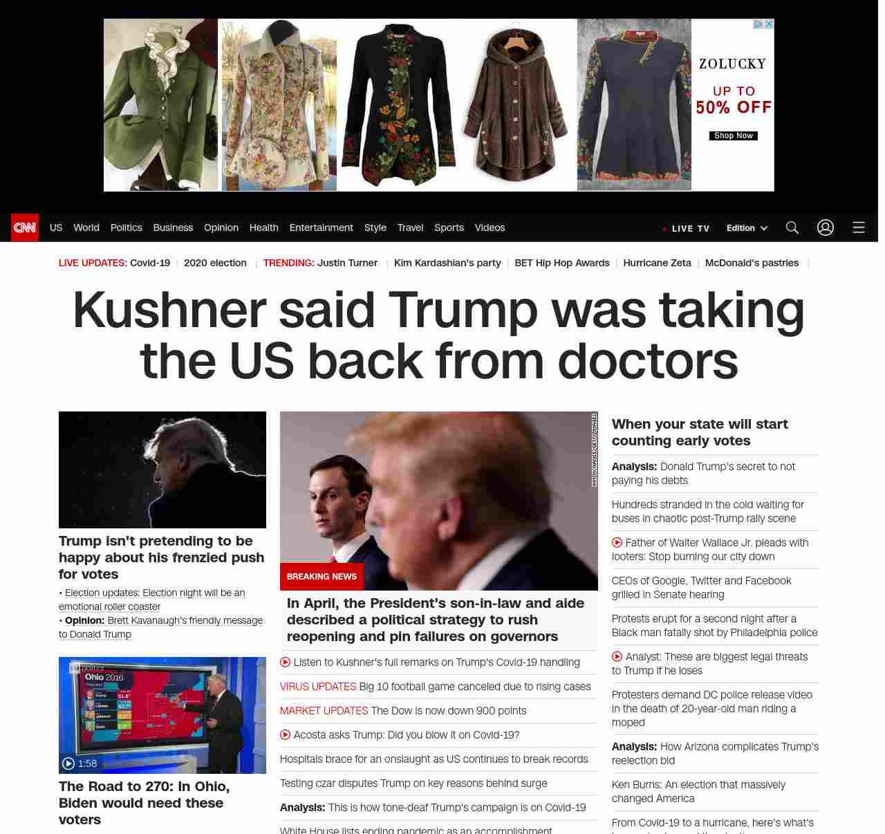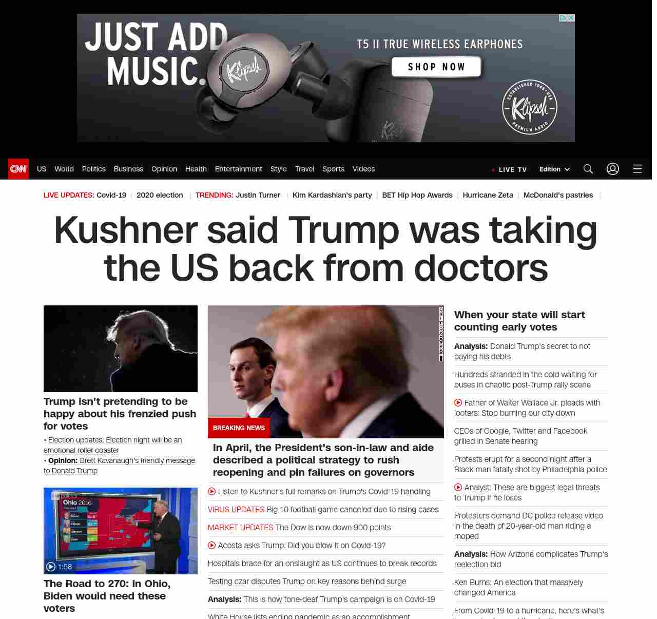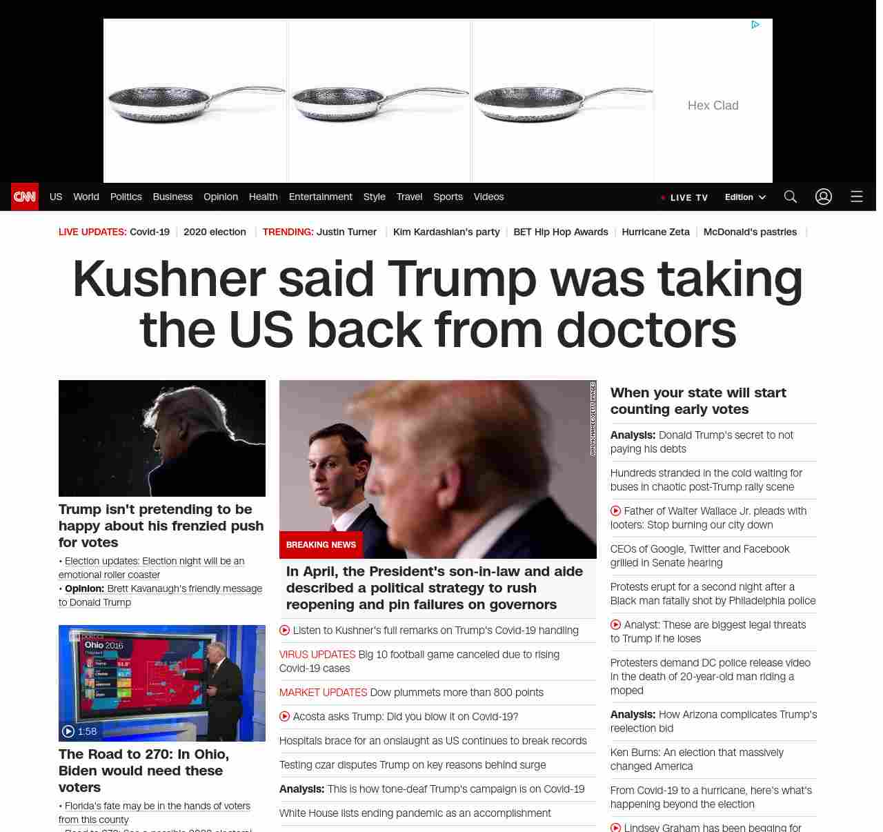 || banner-text–natural”> Kushner said Trump was taking the US back from doctors ||”},”chartbeat”:{“sections”:””},”branding_content_page”:”presidential-debate”,”branding_content_zone”:[“default”],”branding_content_container”:[“default”,”cnn-money-markets”,”space-and-science”,”cnn-heroes-hp”],”branding_content_card”:[“”]} , edition: “domestic” , sourceId: ”