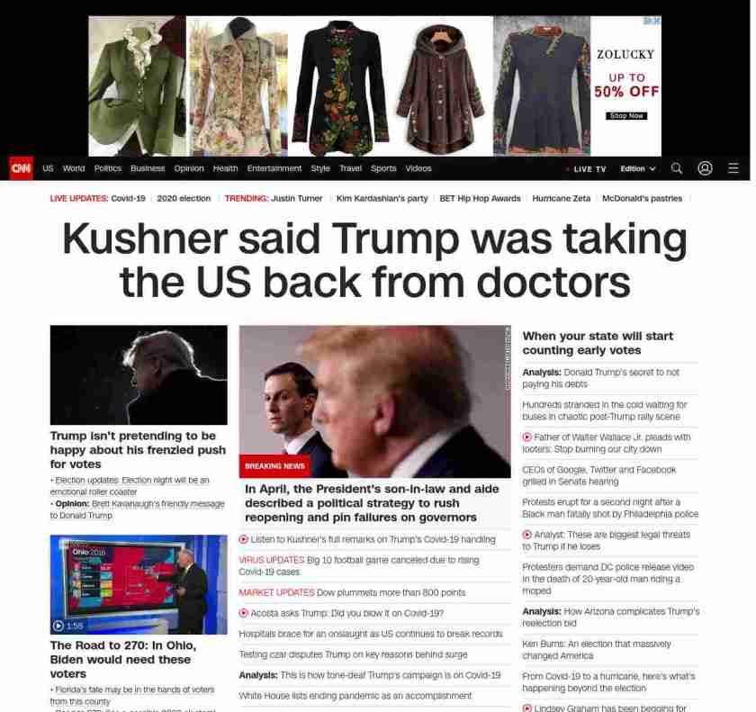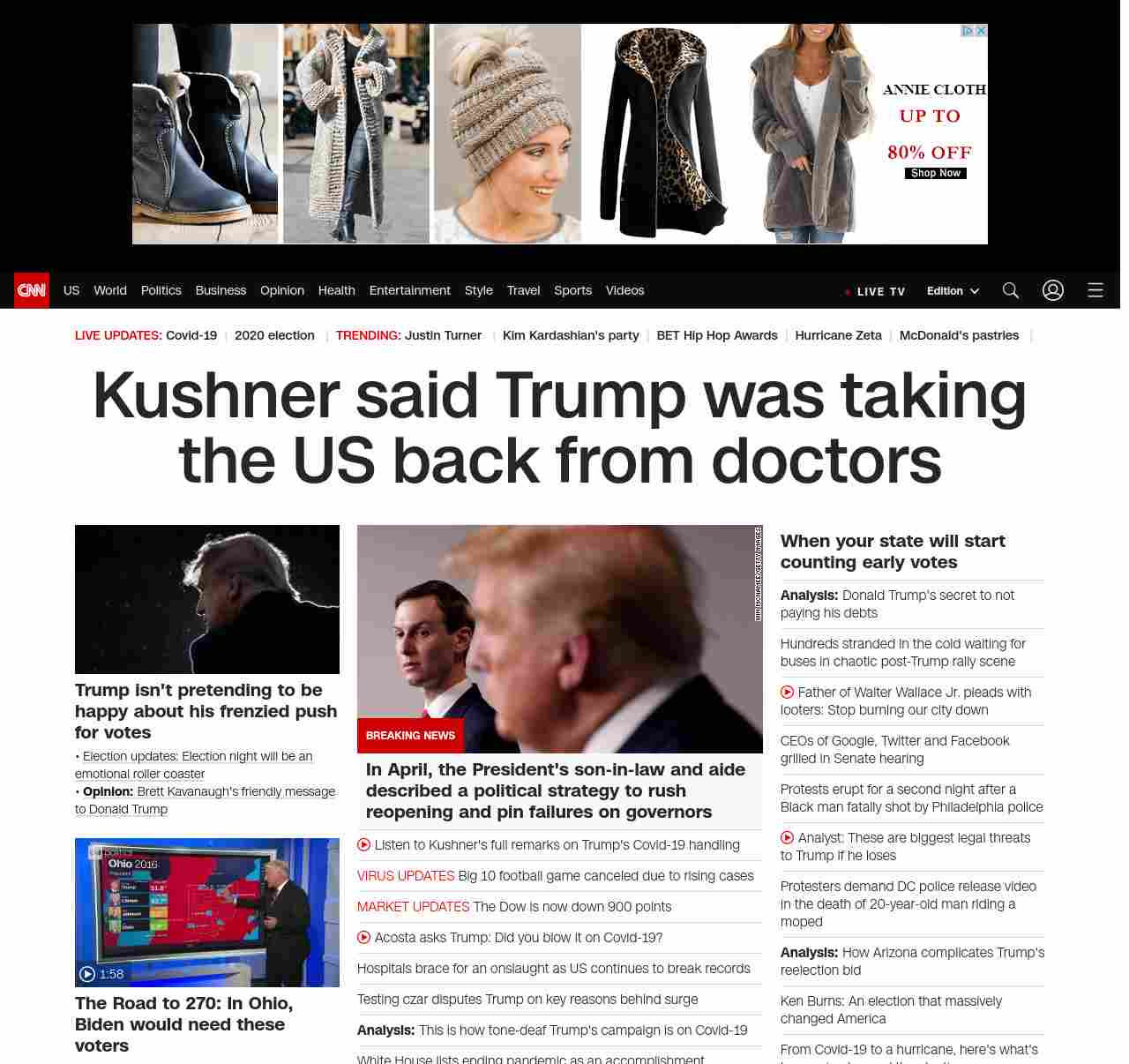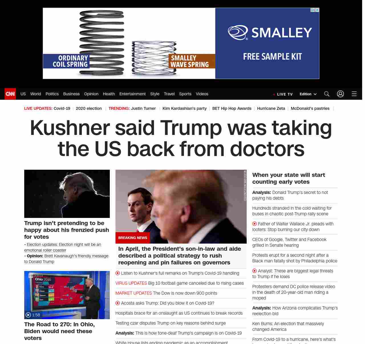 || banner-text–natural”> Kushner said Trump was taking the US back from doctors ||”},”chartbeat”:{“sections”:””},”branding_content_page”:”presidential-debate”,”branding_content_zone”:[“default”],”branding_content_container”:[“default”,”cnn-money-markets”,”space-and-science”,”cnn-heroes-hp”],”branding_content_card”:[“”]} , edition: “domestic” , sourceId: ”