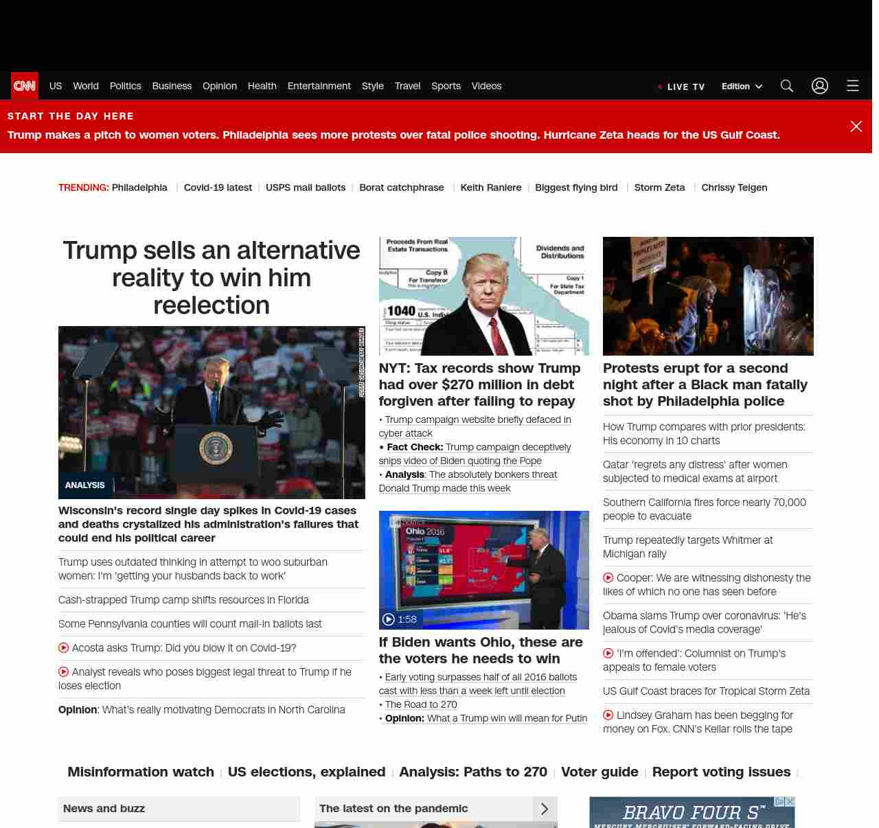 || screaming-banner-text banner-text-size–char-47″ data-analytics=”_list-hierarchical-xs_article_”> Trump sells an alternative reality to win him reelection ||Wisconsin’s record single day spikes in Covid-19 cases and deaths crystalized his administration’s failures that could end his political career