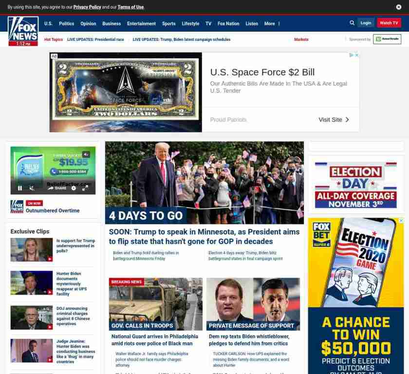 =”https://www.foxnews.com/politics/election-4-days-away-trump-biden-blitz-battleground-states“>SOON: Trump to speak in Minnesota, as President aims to flip state that hasn’t gone for GOP in decades