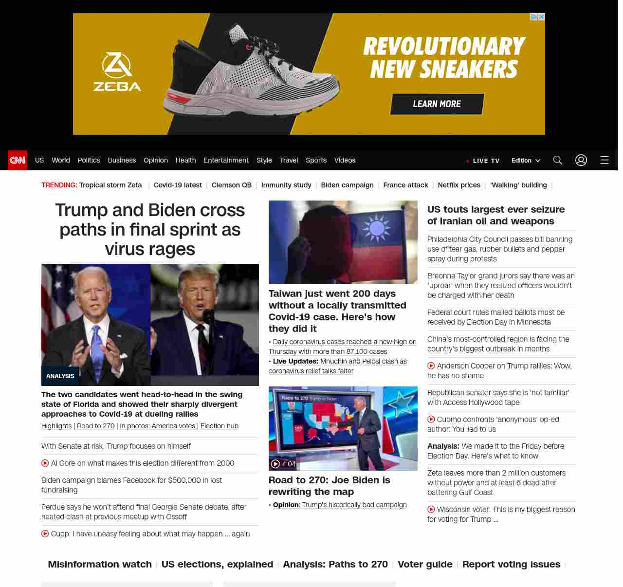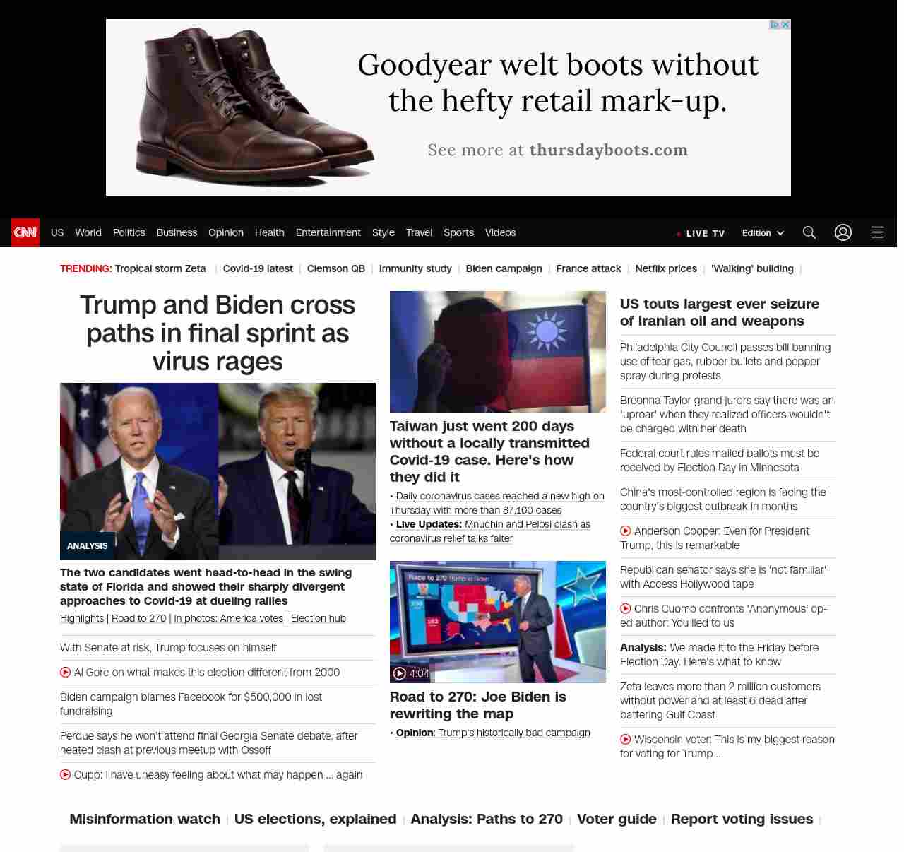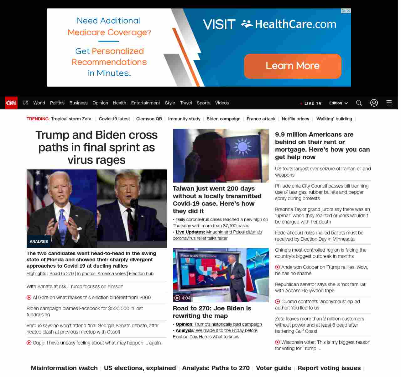 || screaming-banner-text banner-text-size–char-47″ data-analytics=”_list-hierarchical-xs_article_”> Trump and Biden cross paths in final sprint as virus rages ||”},”chartbeat”:{“sections”:””},”branding_content_page”:”presidential-debate”,”branding_content_zone”:[“default”],”branding_content_container”:[“default”,”cnn-money-markets”,”space-and-science”,”cnn-heroes-hp”],”branding_content_card”:[“”]} , edition: “domestic” , sourceId: ”