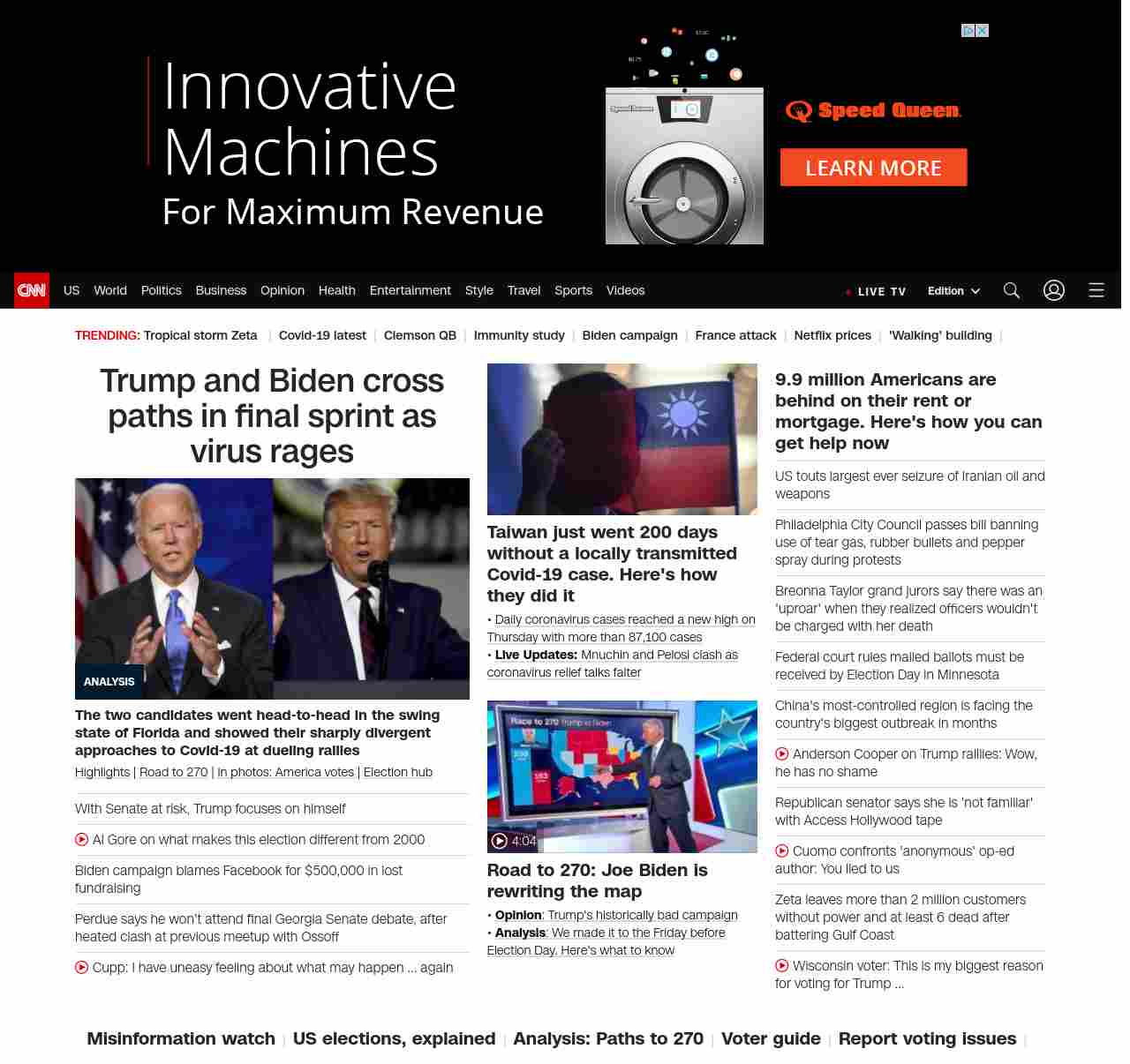 CNN2: subjectpartBANNER=|=”banner-text screaming-banner-text banner-text-size–char-47″ data-analytics=”_list-hierarchical-xs_article_”>Trump and Biden cross paths in final sprint as virus rages| ((lubuntu at wor1)))