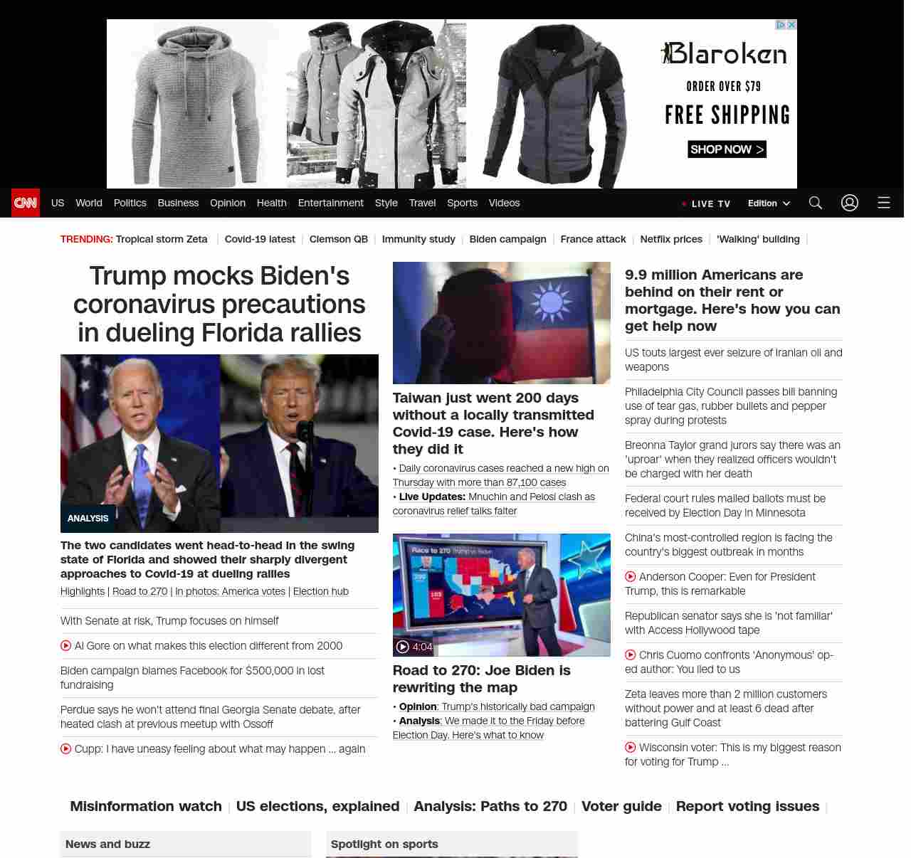 || screaming-banner-text banner-text-size–char-47″ data-analytics=”_list-hierarchical-xs_article_”> Trump and Biden cross paths in final sprint as virus rages ||=”banner-text screaming-banner-text banner-text-size–char-47″ data-analytics=”_list-hierarchical-xs_article_”>Trump mocks Biden’s coronavirus precautions in dueling Florida rallies