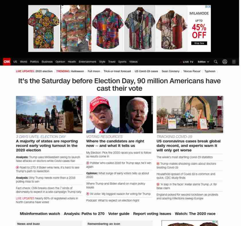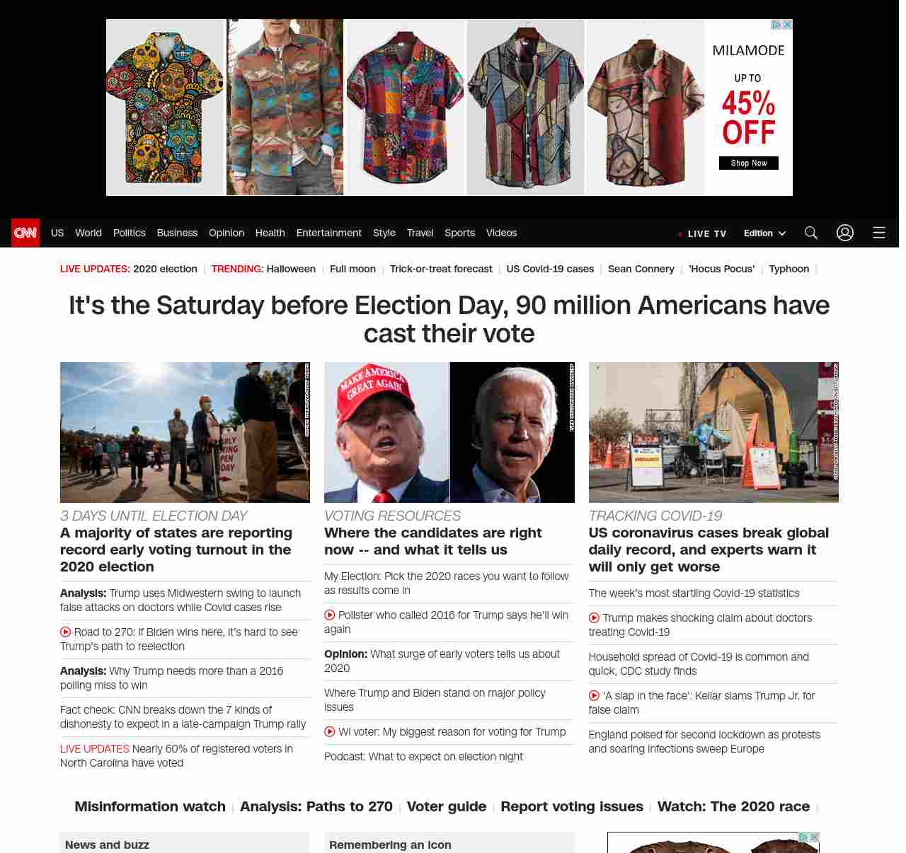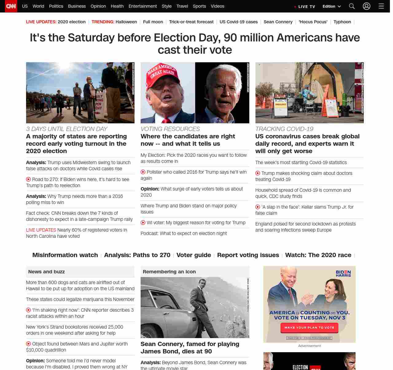 || banner-text–maximized banner-text-size–char-47″> It’s the Saturday before Election Day, 90 million Americans have cast their vote ||”},”chartbeat”:{“sections”:””},”branding_content_page”:”presidential-debate”,”branding_content_zone”:[“default”],”branding_content_container”:[“default”,”cnn-money-markets”,”space-and-science”,”cnn-heroes-hp”],”branding_content_card”:[“”]} , edition: “domestic” , sourceId: ”