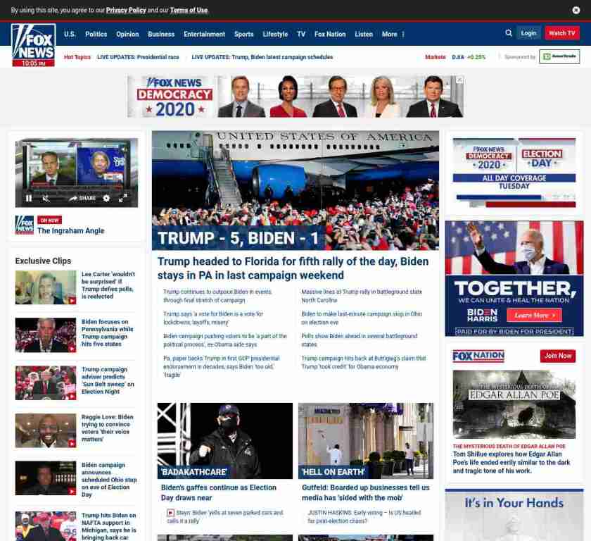 FN: [[TRUMP – 5, BIDEN – 1]] Trump headed to Florida for fifth rally of the day, Biden stays in PA in last campaign weekend</a ((lubuntu at wor1))