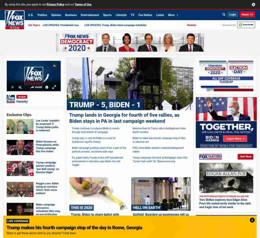 =”https://www.foxnews.com/politics/live-updates-2020-presidential-race-biden-vs-trump“>Trump lands in Georgia for fourth of five rallies, as Biden stays in PA in last campaign weekend